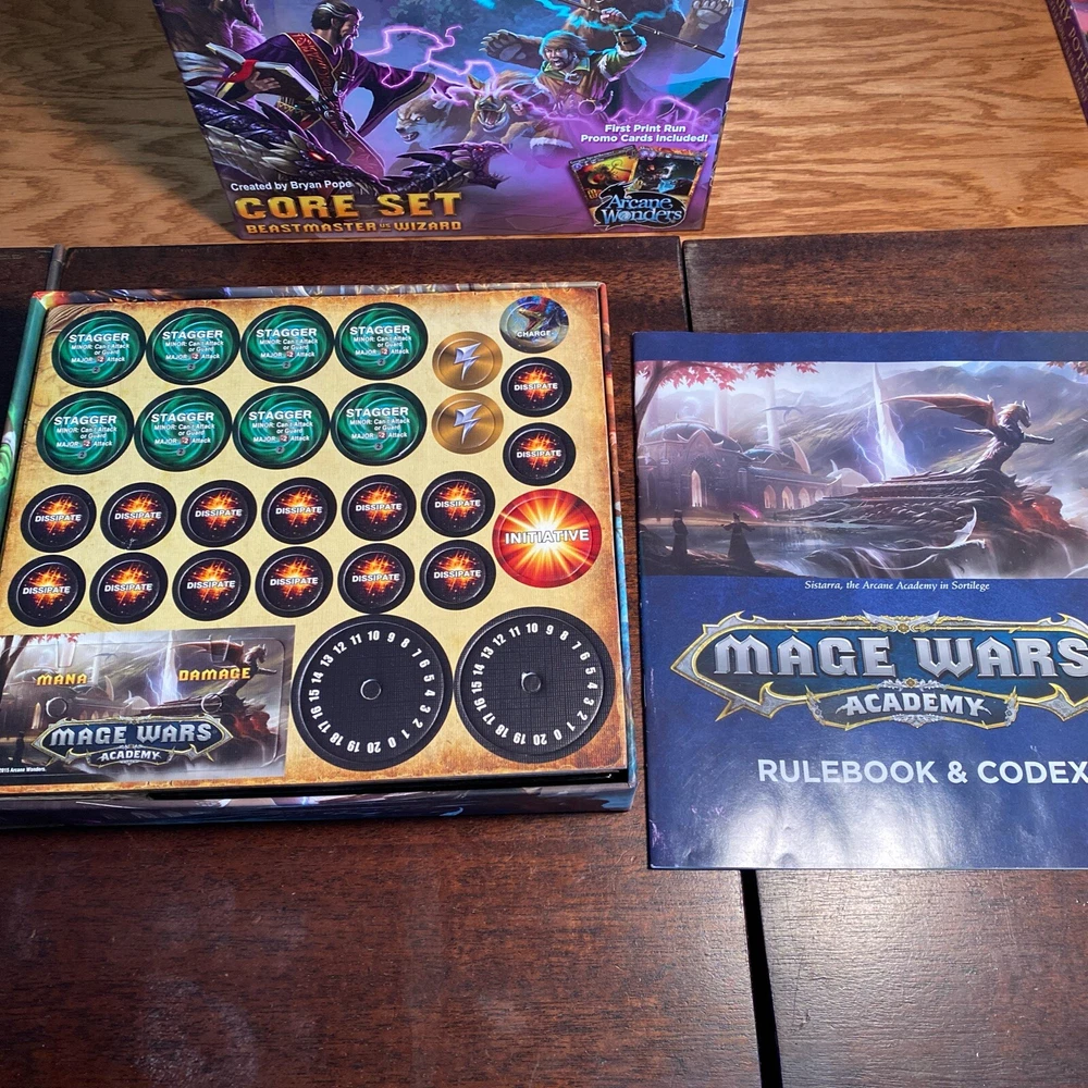 MAGE WARS ACADEMY CORE SET BEASTMASTER VS WIZARD Unpunched Sealed Cards No Dice