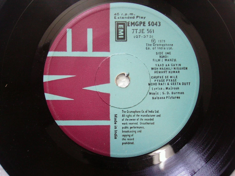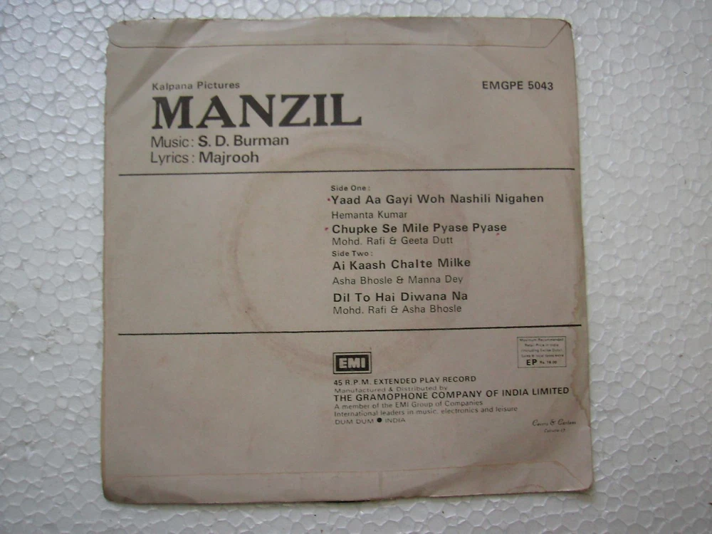 MANZIL S D BURMAN EMGPE 5043 1979 RARE BOLLYWOOD india OST EP 45 rpm RECORD ex