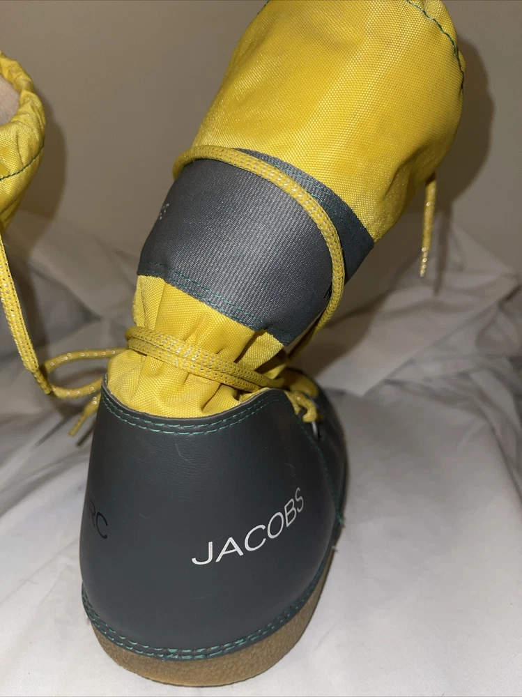 These Marc Jacobs snow boots are a must-have for any winter wardrobe. The vibrant yellow color will add a pop of color to any outfit, while the mid-calf shaft style and nylon upper material provide both warmth and durability. Perfect for women's US shoe size 6, these boots are designed for winter season wear and feature a snow boot style that is both practical and stylish. The boots are pre-owned but in excellent condition. The brand name alone speaks to the quality of the boots, so you can trust that you are getting a well-made product. These boots are perfect for anyone looking for a comfortable and fashionable winter shoe option. Don't miss out on the chance to add these Marc Jacobs snow boots to your collection.