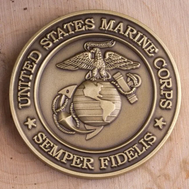 This is a rare 1.75" challenge coin featuring the Marine Corps Recon design. It is a collectible item from the current militaria era (2001-now) and is considered an original item in the category of challenge coins.