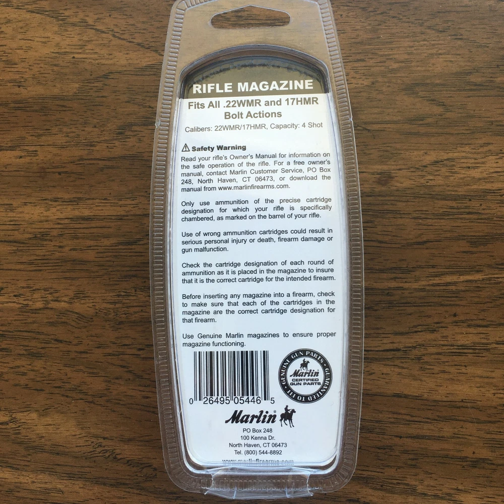 New in package, nickel Marlin 4 round .22 magnum/ .17 HMR bolt action rifle magazine. Application listed below. Please refer to images. Glad to combine freight when possible, please message me prior to paying for an invoice with combined freight amount. Message any questions or for more images. Thanks for looking! Marlin Factory 4 round 22 win. Magnum rimfire gun magazine. Fits models 882SS,982S,882,982,25MN,925M,782,25M,980,17V,917V,17VS, 917VS. This magazine is made from heat treated steel and has a polymer follower and a metal floor plate. This is a genuine marlin Factory replacement magazine.
