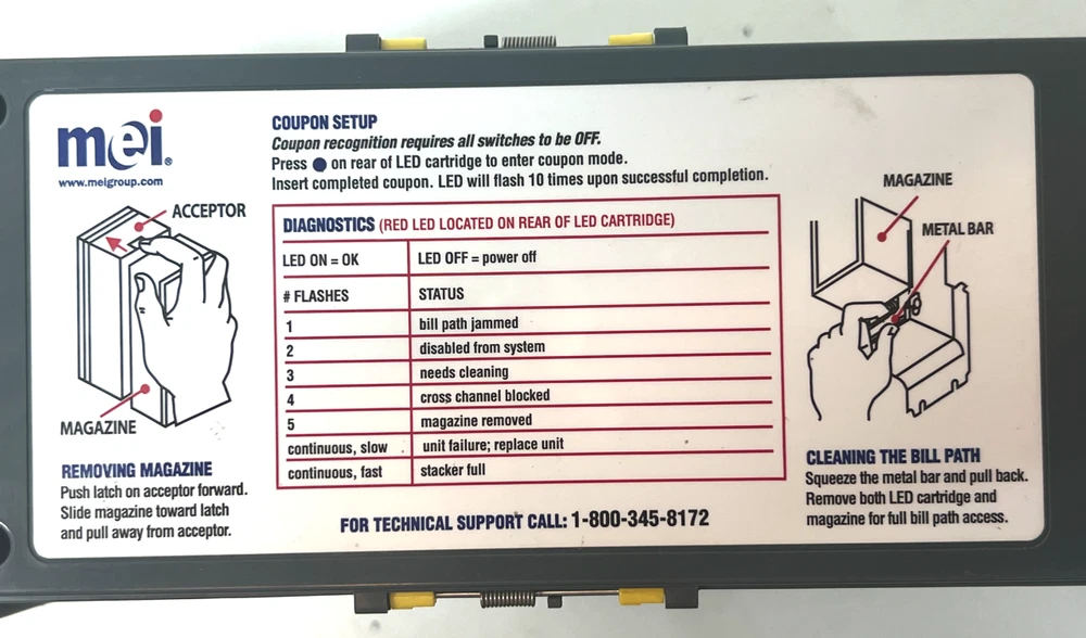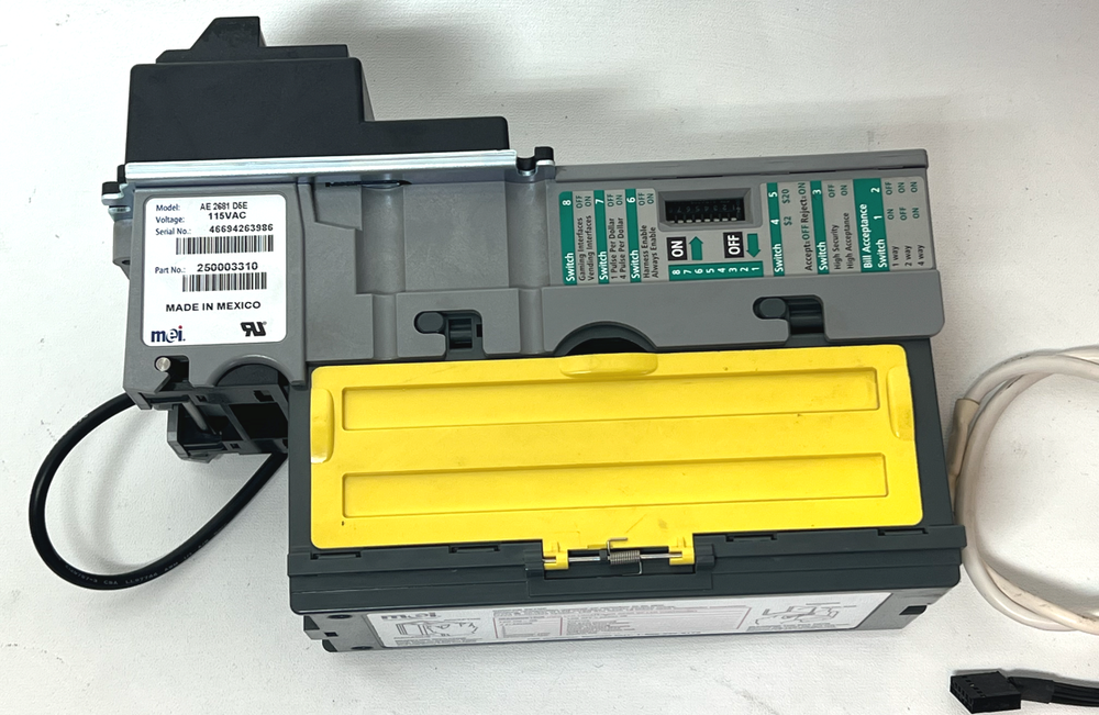 Available for purchase is a MARS MEI 2681 D5E 110V Bill Validator Acceptor $1 $5 $10 $20 These validators came from working vending machines. I have a few of these; the one in the photos may not be the one you receive. Please ask any questions prior to purchase, I will do my best to answer or perform any functions requested. This item comes with everything shown in the photos. Please see photos for more information. I have a few of these; the item shown in the pictures may not be the one you receive. You will receive ONLY what is listed in the "What's Included" section below, nothing else is included; please bid accordingly. What's Included: 1 - MARS MEI 2681 D5E 110V Bill Validator Acceptor $1 $5 $10 $20