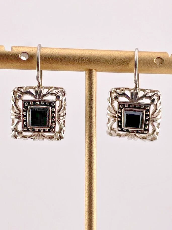 MARSALA 925 STERLING SILVER BLACK ONYX DROP EARRINGS 1" BALI STYLE SOUTHWEST 216 ****************************** Thank you for your interest in our jewelry. We?d like to introduce ourselves. We are just a retired couple who love matching our customers with great jewelry. We?re not professional jewelers. To have the best shopping experience we like to recommend the following: Please measure your hand, wrist, finger or neck to ensure the best fit. We can use your measurements to help with sizing. Please ask all the questions you want. We know some stuff and, if we don?t, we?ll do the research. We like to learn too. More Stuff: If an item is described as ?gold over 925 sterling silver? this means it is gold vermeil. Vermeil is the process by which a layer of gold (usually 14k or 18k) is bonded to sterling silver. We only clean with gentle soap and warm water to avoid damage. The items we sell may be new or pre-owned and may have normal wear, slight damage, and/or tarnish. We make every effort to ensure the items we sell are as described. This includes testing to confirm metal purity if the item isn?t marked, and testing for gemstone identity. We try to put measurements in the jewelry description and include a photo of each piece with a U.S. quarter (25mm).