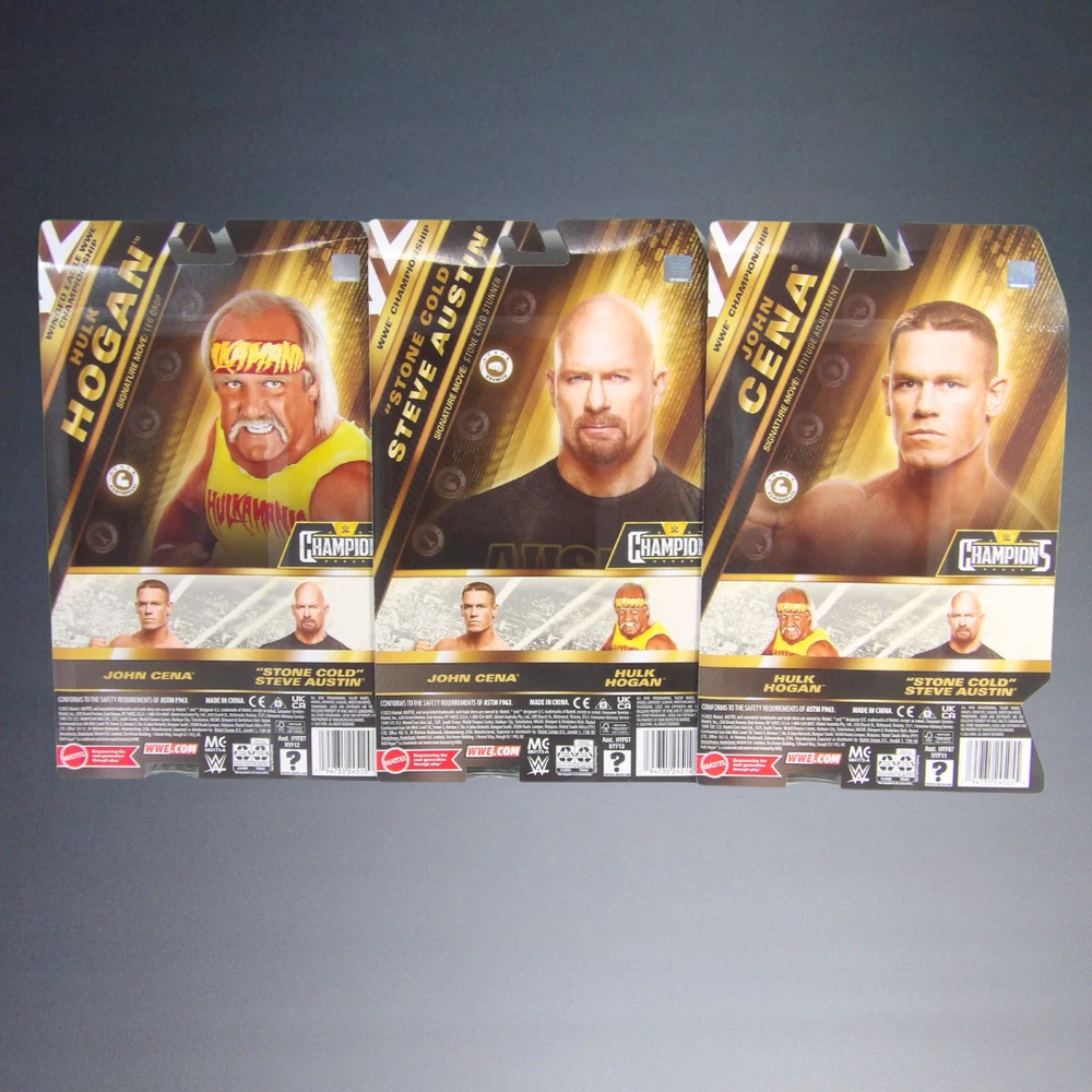 2024 WWE Champions Action Figures by Mattel Hulk Hogan, Steve Austin and John Cena Approx 6.75" tall New Articulation New in Package Most items in our shop are preowned, and many are not brand new unless we state so. Most are from estate sales, auctions, or private collections. The items may show minor age related wear and/or minor flaws consistent with age and use. Please check photos carefully as they are part of the description, we do our best to describe any imperfections. Feel free to ask any questions We Combine USA Shipping PLEASE NOTE OUR STORE BUSINESS POLICIES: PAYMENT: Payment is required within 3 days of purchase (Auction or Buy it Now). If we do not receive a payment within this timeframe, we will cancel the order based on "The Buyer Did Not Pay In Time Allowed" and the item will be relisted. SHIPPING: We take special care when packaging each and every item we sell. Packages are shipped the same or the next day. We do not ship on weekends or on US public holidays. Shipping notifications are updated thru the eBay system so you can track your package easily. RETURNS: We accept returns for items not as described or if you receive the wrong item. Return shipping will be paid by the buyer and is non-refundable. It is very important to us that you are happy with your purchase so if you have any problems or concerns with your order, please feel free to contact us to discuss. We are here to help and resolve any issues. INTERNATIONAL BUYERS: Welcome! Customs duties and taxes are the buyers responsibility. FEEDBACK: We maintain high standards of excellence and strive for 100% customer satisfaction! We greatly appreciate your POSITIVE feedback. Please do NOT leave negative or neutral feedback without any contact. We will leave you 100% feedback after you have paid and received your item. We will highly appreciate 100% feedback left for us. If for any reason you are not happy with your purchase, please contact us to discuss before leaving negative feedback. Customer service is our #1 priority and we are always willing to work things out.