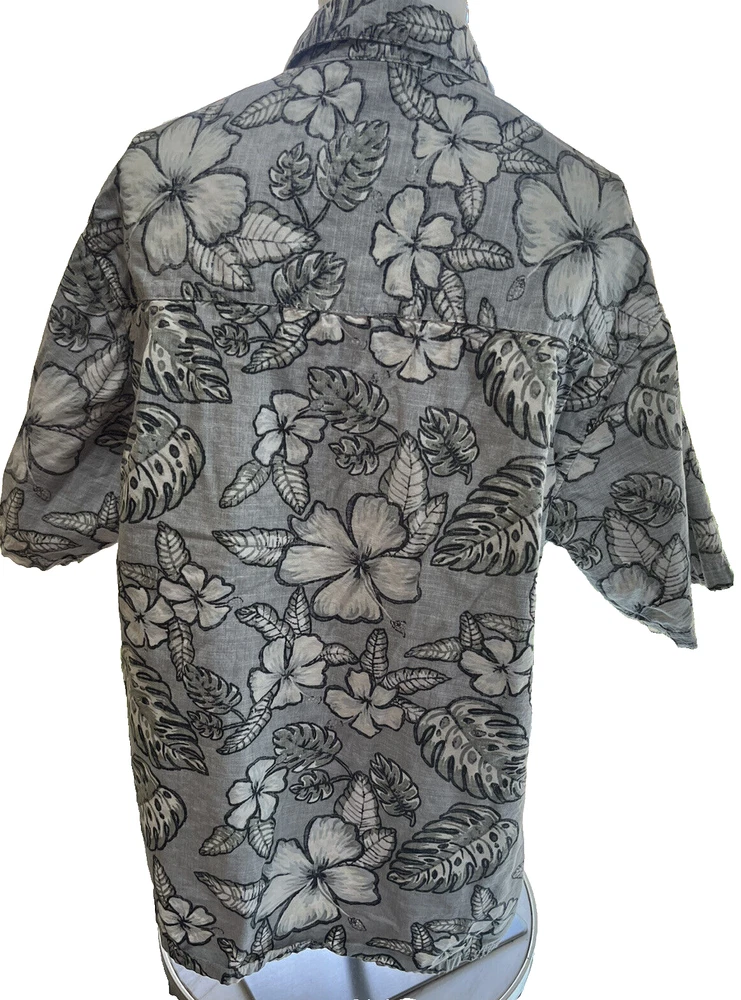 Vintage MAUI and SONS Hawaiian Shirt Men's Medium Reverse Print Gray Button Up Chest: 48"