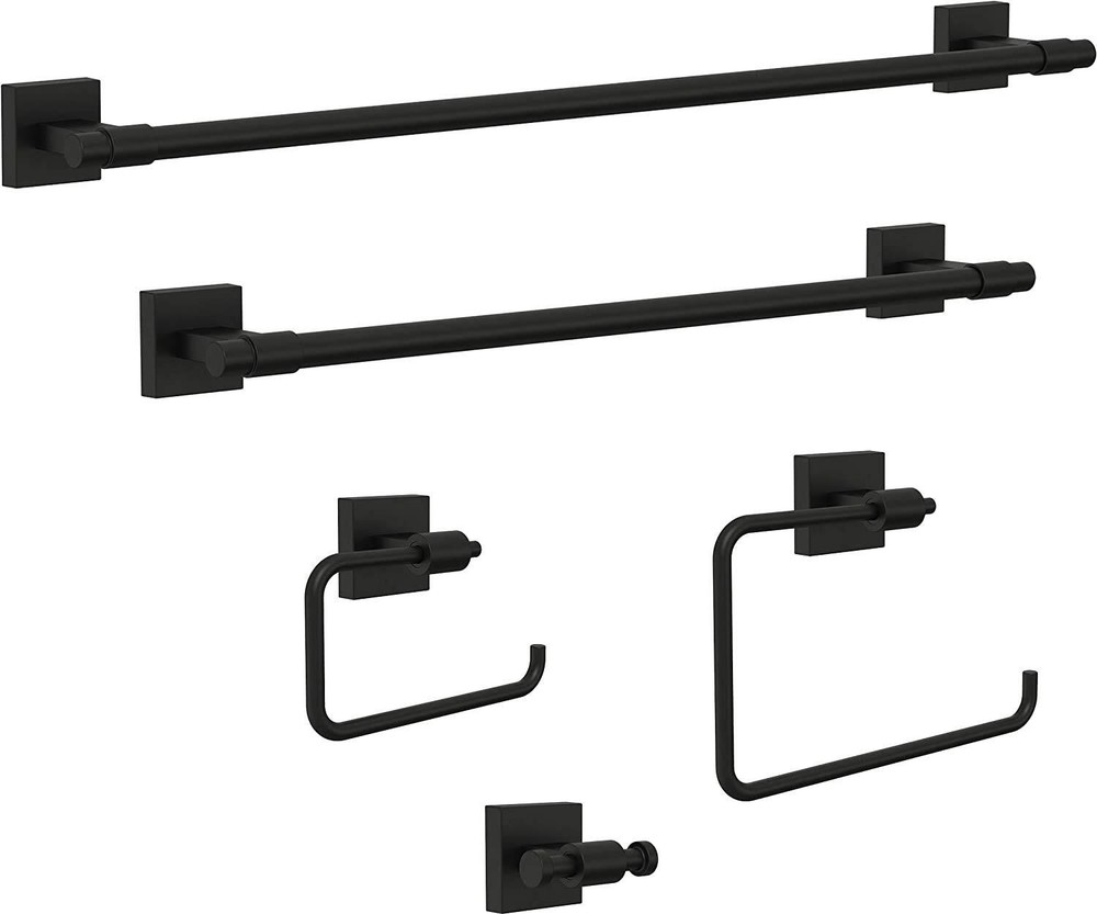 The Maxted Collection has a modern architecture with its symmetrical frame and crisp lines. This fusion creates a bold design that is iconic, timeless and classic. Complete your bathroom today with the rest of the Maxted Collection. Wall mounted design for bathroom convenience and organization Matte Black finish instantly upgrades any bathroom with its trendy and stylish appearance Has durable, long-lasting finish to help prevent corrosion, tarnish or discolor so you can enjoy a look you love for life die cast construction provides reliability and durability Holds up to two items to help maximize your space while organizing robes and towels