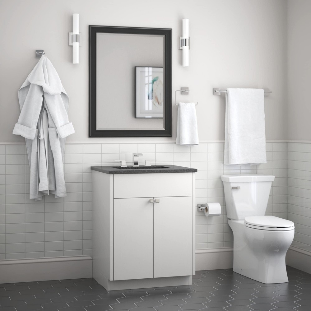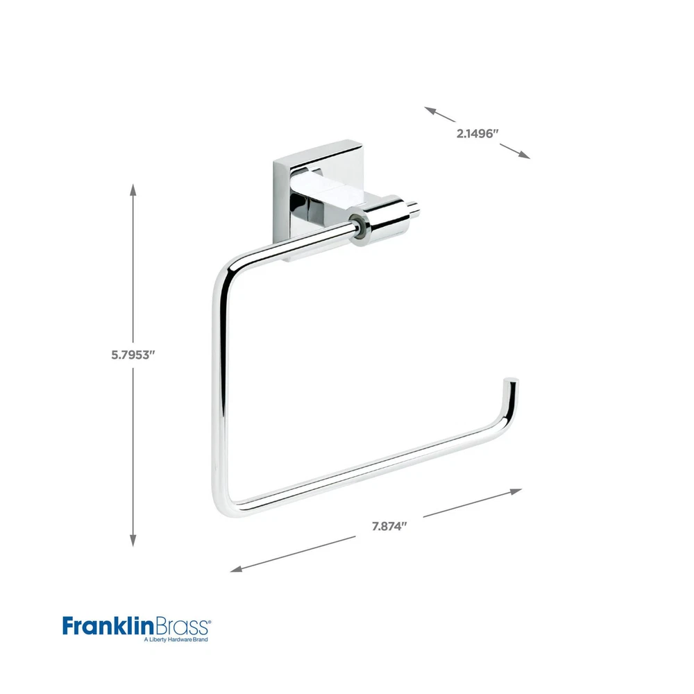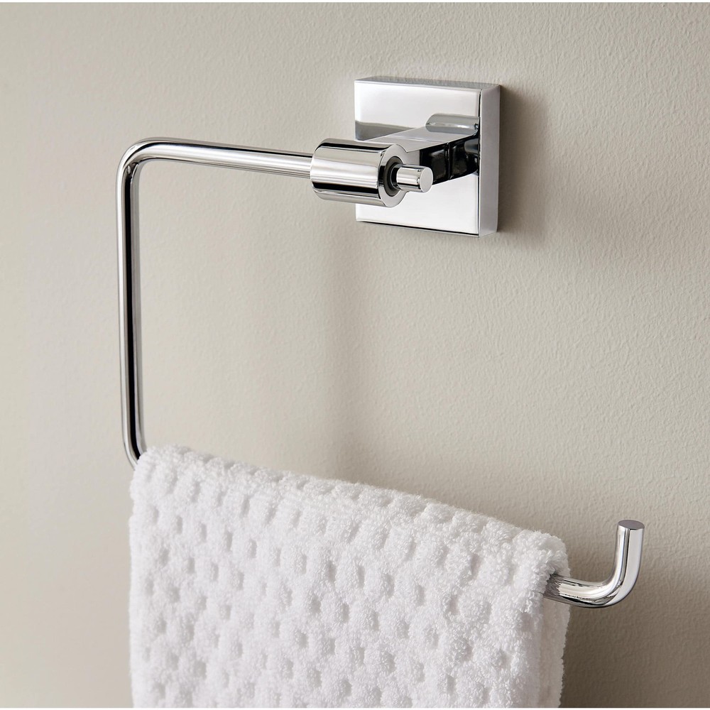 The Maxted Bath Collection has a modern architecture with its symmetrical frame and streamlined contours. This fusion creates a distinguished design for your bath that is truly iconic. This wall mount square towel ring keeps hand towels conveniently within reach. Complete your space with coordinating pieces from the full collection (sold separately). BATH HARDWARE: Polished chrome square open towel ring for the bathroom FINISH: Chrome finish creates a bright, highly reflective, cool metallic look BUILT TO LAST: Long-lasting, durable finish resists corrosion, tarnish, and discoloration DURABLE: Crafted from multiple metals for strength and reliability DIMENSIONS: Towel ring measures 5.80" H x 7.87" L x 2.15" D EASY INSTALL: All mounting hardware and instructions provided COORDINATE: Complete your look with the coordinating Maxted Bath Collection of accessories (sold separately) : Confidently backed by a Limited