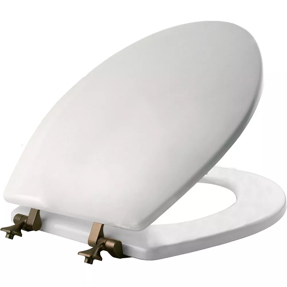 MAYFAIR 44ORA 000 Toilet Seat with Oil Rubbed Bronze Hinges will Never Come Loose, ROUND , White NO MORE WIGGLE: With the STA-TITE Fastening System your seat will never come loose INSTALLS WITH A SNAP: easy to install with just a wrench STYLISH AND SECURE OIL RUBBED BRONZE HINGES: Accent bath hardware finishes RESISTS CHIPPING AND SCRATCHING: Durable enameled wood seat provides a superior high-gloss finish FITS ALL ROUND TOILETS: Including Kohler, American Standard, TOTO and many more PROUDLY MADE IN THE USA: With Earth friendly materials and processes From the Manufacturer Mayfair – For over 60 years, Mayfair has been bringing quality products with innovation and style to homes throughout North America. Mayfair toilet seats provide a wide variety of designs to easily integrate into any bathroom. The needs of customers are at the forefront of design with unmatched features and benefits that make everyday lives easier. The Mayfair brand is part of Bemis Manufacturing Company, the world’s largest manufacturer of toilet seats. Founded in 1901, and in the fourth generation of family ownership, Bemis has grown from a maker of furniture and wooden wagons to an international enterprise with manufacturing and warehousing facilities worldwide. In addition to manufacturing toilet seats, Bemis is one of North America’s top non-automotive producers of contract plastic injection-molded components. With a continued commitment to the worldwide community, Bemis Manufacturing Company strives to set the standard for ecological responsibility, conservation and preservation. Product Description This round Mayfair molded wood seat provides durability and stability. The oil-rubbed bronze hinges are long-lasting and stylish. With the STAY-TITE Seat Fastening System, the seat does not shift around and stays firmly attached to the toilet. This elongated seat features color-matched bumpers. It is proudly made in Sheboygan Falls, Wisconsin, USA. NOTE: Colors on a website or printed from a website can vary drastically from the actual color of the toilet seat due to monitor and printer settings. The colors on this page are for approximate visual use and should not be used to match colors exactly to a toilet bowl. Shipping We offer FREE shipping on all orders! We ship within Three business days of payment, usually sooner. We use a selection of shipping services such as UPS, FedEx, USPS etc. We only ship to the lower 48 states, no APO/FPO addresses or PO Boxes allowed. Local pickups and combined shipping options are not provided at this time. Return You can return a product for up to 30 days from the date you purchased it. Any product you return must be in the same condition you received it and in the original packaging. Please keep the receipt. Payment We accept payment by any of the following methods: PayPal Please pay as soon as possible after winning an auction, as that will allow us to post your item to you sooner! Feedback Customer satisfaction is very important to us. If you have any problem with your order, please contact us and we will do our best to make you satisfied. Contact Us If you have any queries, please contact us via ebay. We usually respond within 24 hours on weekdays. Please visit our eBay store to check out other items for sale! Thank you for shopping at our store.