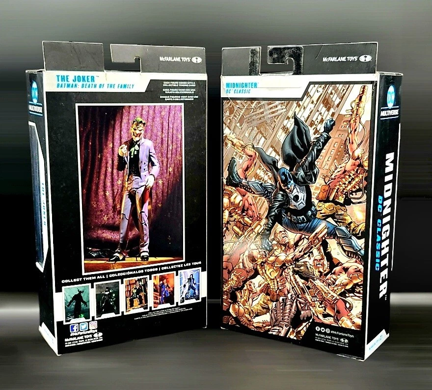 - 2 TOYS MCFARLANE DC MULTIVERSE BATMAN & JOKER. * 1 Mcfarlane DC Multiverse Batman Midnighter Gold Label. 1 Mcfarlane Toys DC Multiverse Joker Death In The Family. - 2 Unopened Minifigures ( Batman VS Joker ). - 2 Showcase building blocks.