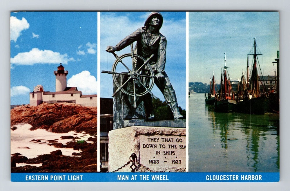 ME-Maine, Scenic View Lighthouse Gloucester Harbor, Vintage Postcard