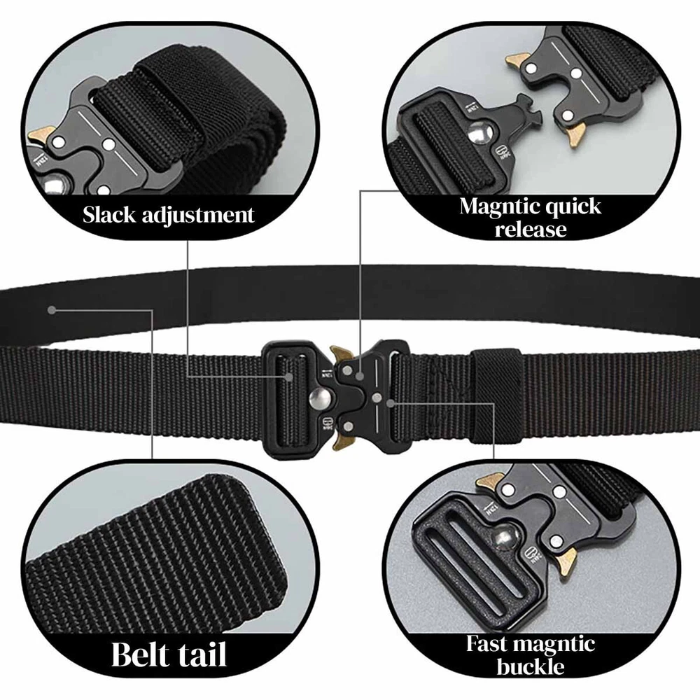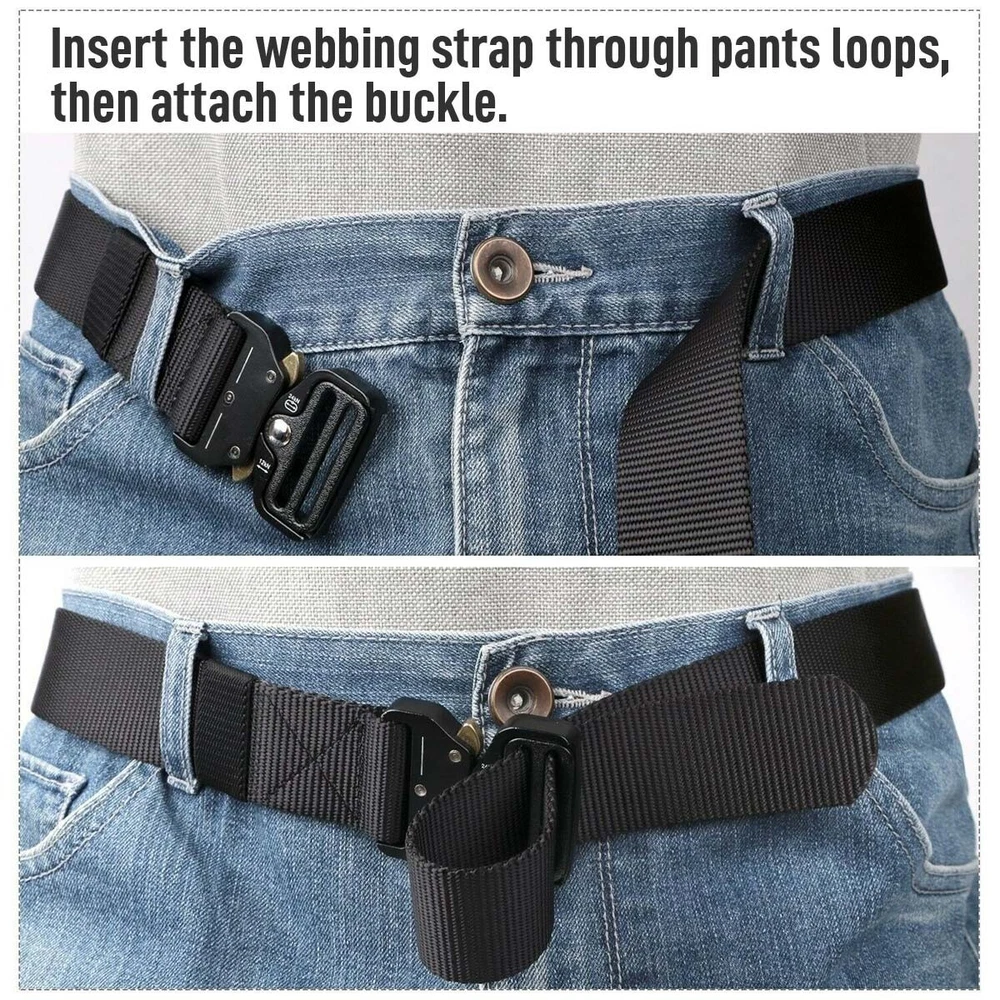 Features: 1.Made of environment friendly nylon material with belt buckle, soft and comfortable for daily use. 2.Quick release solid buckle and wide heavy-duty webbing, make this belt durable to use in outdoor activities. 3.Hole-less belt means you can adjust the length freely. 4.The buckle is non-slip, no need to repeated tight, non-friction to the belt. Description: Made of environment friendly nylon material with belt buckle, soft and comfortable for daily use. Specifications: Material: Nylon Buckle color: Black Belt color: Black Belt length: 125cm/49" Belt width: 3.8cm/1.5"' Weight:250g Note: Please choose the right size The belt can be modified according to your waist. Package Include: 1 * Waist Belt (Include Metal Buckle)
