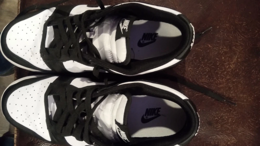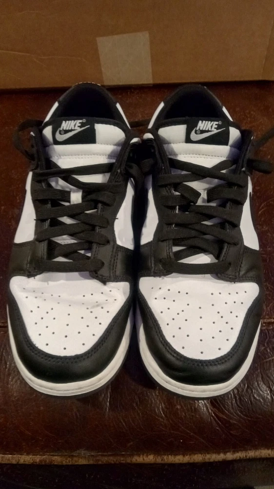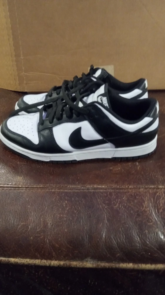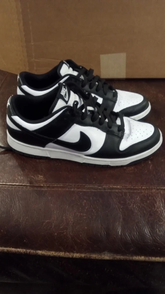 This pair of Nike Dunk Low sneakers is perfect for any activity, whether it's walking, playing basketball, or running and jogging. The shoe features a low top shoe shaft style, lace-up closure, and a multicolor design with a panda theme. The upper is made of leather and the lining is made of fabric, while the outsole is made of rubber for durability. The sneaker is cushioned, comfortable, and breathable, making it ideal for summer, fall, and spring. It's a pre-owned item with a US shoe size of 10.5 and a UK shoe size of 9.5. The Nike Dunk Low is a popular choice for athletic shoes, and this particular model is part of the Nike Dunk product line. Don't miss out on the chance to add this stylish and functional sneaker to your collection. SNEAKERS ARE PRE OWNED IN VERY GOOD CONDITION