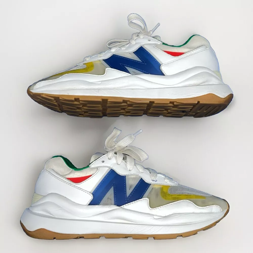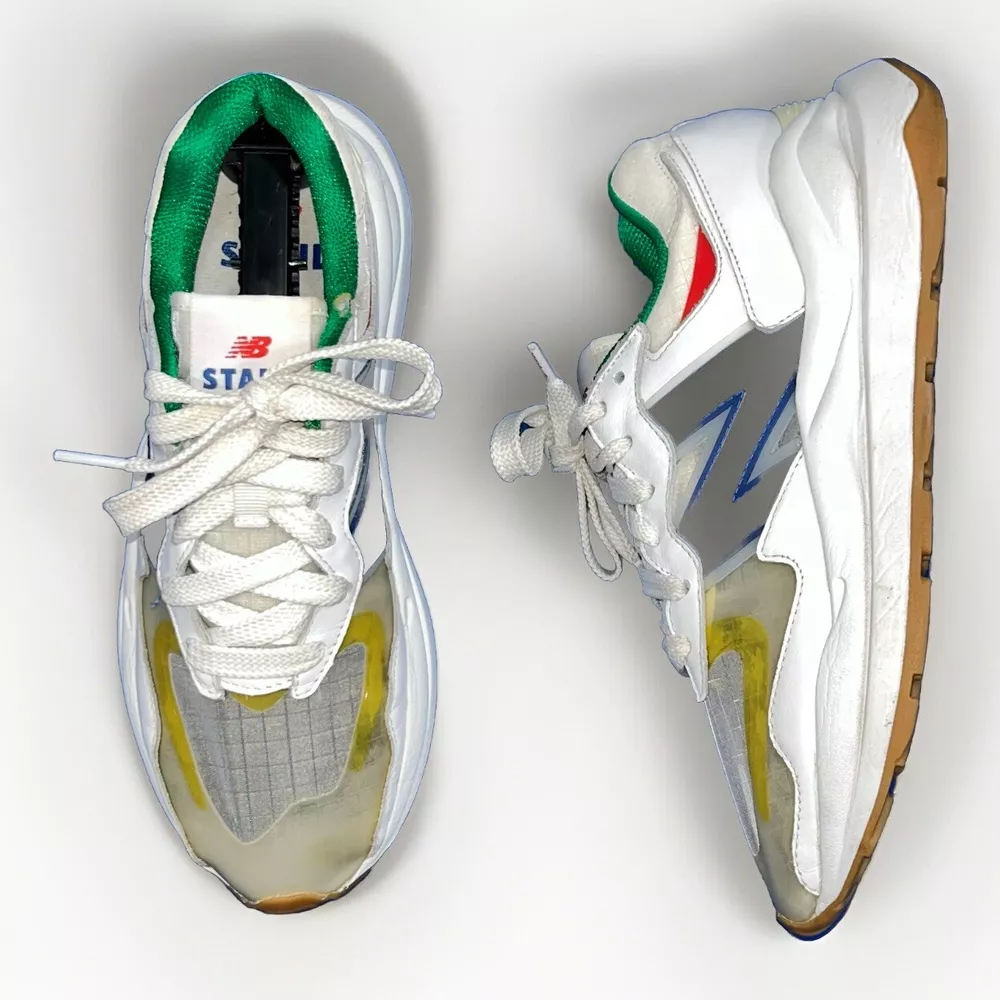 Elevate your sneaker game with these stylish and comfortable New Balance 57/40 sneakers, designed for men in size 7.5. Featuring a white colorway and a sleek lace-up closure, these sneakers are perfect for both walking and running. The upper material is made of a combination of leather and vinyl, providing a durable and breathable fit. With a shoe width of D and a product line of NEW BALANCE X STAUD, these sneakers are sure to impress. The style code is M5740SR and the EU shoe size is 40.5. Don't miss out on the opportunity to add these high-performance sneakers to your collection.