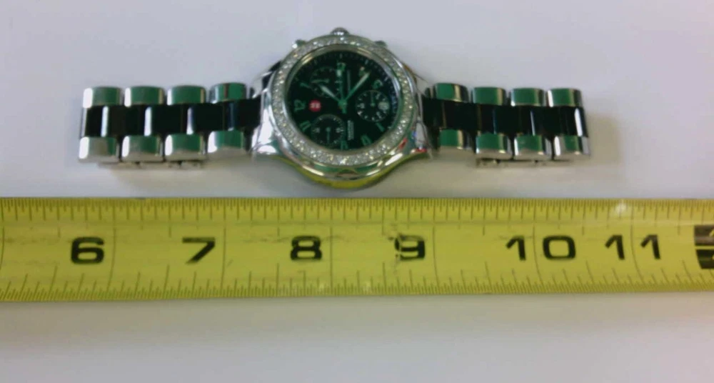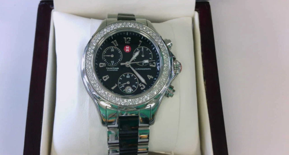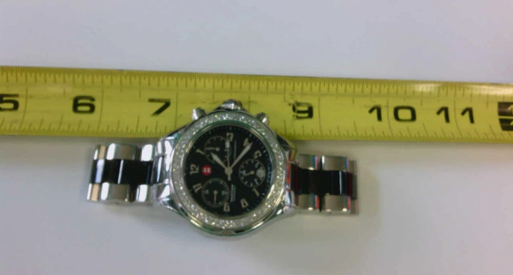 You are viewing a MICHELE Tahitian Ceramic Diamond Stainless Steel Chronograph Watch. BUY NOW!! Read below for further details... UNFORTUNATLY, WE DO NOT SELL TO THOSE WITH UNDER 500 EBAY FEEDBACK. IF YOU DO HAVE 500 OR UNDER FEEDBACK AND YOU ARE INTERESTED IN THE ITEM PLEASE CONTACT US FIRST BEFORE PURCHASING OR MAKING AN OFFER. FAILURE TO DO SO WILL RESULT IN A CANCELLED TRANSACTION. WE APPRECIATE YOUR UNDERSTANDING. THANK YOU. THESE ARE ALL THE INFO AND PICS WE CAN PROVIDE!! WE ARE UNSURE OF THE TCW OF THE DIAMONDS AS OUR RESEARCH TIME WAS LIMITED. A NEW BATTERY WAS JUST REPLACED BY A PROFESSIONAL WATCH PERSON A FEW DAYS FROM THIS POSTING. GREAT BUY NOW PRICE!! WOULD ADD NICELY TO ANYONES COLLECTION. ORIGINAL BOX AND CARDS NOT INCLUDED. WE DO NOT KNOW IF THIS WATCH WILL FIT YOUR WRIST. WE DO NOT KNOW WHERE TO OBTAIN OR HAVE EXTRA LINKS. AS WE MEASURED IT FITS APPROX. A 6.5" WRIST SIZE. WE CAUTION IF YOU ARE NOT SURE YOUR WRIST SIZE OR NOT SURE ABOUT THE SIZE IN GENERAL PLEASE DO NOT PURCHASE. THANK YOU. WATCH RUNS. Seller's Notes: I am not a watch expert but have sold and currently listing some wonderful items to the great people of eBay. This is the exact item you will receive. Please read below for further details. Enjoy... Crystal - looks very good- no issues. Dial - looks great- no issues. Stainless/ Ceramic Band - looks good. Very light hairline scratches that we could see but is in very good condition. Bezel/Case- Looks very good- no issues. Diamonds look good, no issues. Case has light hairline scratches but looks good. Crown - pulls out and moves hands and date- no issues. Chrono- no issues. Works to the best of our ability. ORIGINAL BOX AND CARDS ARE NOT INCLUDED. WORKINGS- WATCH DOES RUN. WITH EVERY PRE OWNED WATCH WE DO NOT GUARENTEE 100% PROPER WORKINGS OR WHAT HAVE YOU. Overall would make a nice addition to any collection. See high def pics to determine condition, etc. UNFORTUNATLY, WE DO NOT SELL TO THOSE WITH UNDER 500 EBAY FEEDBACK. IF YOU DO HAVE 500 OR UNDER FEEDBACK AND YOU ARE INTERESTED IN THE ITEM PLEASE CONTACT US FIRST BEFORE PURCHASING OR MAKING AN OFFER. FAILURE TO DO SO WILL RESULT IN A CANCELLED TRANSACTION. WE APPRECIATE YOUR UNDERSTANDING. THANK YOU. PLEASE CHECK OUT MY OTHER LISTINGS!! THANK YOU!! I DO NOT KNOW IF IT WILL FIT YOUR WRIST. Foreign bidders- total shipping weight will be 2-3 POUNDS.. Bidding and Shipping: I will ship to 48 states. UPS/USPS Ground with tracking, insurance, signature. Buyer will pay a flat fee of $7.99. Alaska, and Hawaii will pay a shipping rate based on eBay. Overseas shipping using eBay Global Shipping- YES PLEASE NOTE: I WILL NOT SHIP THIS PERSONALLY- MEANING I WILL USE EBAY GLOBAL SHIP TO SHIP THIS ITEM THEREFORE OVERSEAS BIDDERS YOU WILL HAVE IMPORT CHARGES. I DO NOT KNOW OR AM I RESPONSIBLE FOR THOSE CHARGES. PLEASE CONSIDER THIS BEFORE YOU MAKE YOUR BID. THANK YOU. I WILL ALSO OFFER A 2ND OPTION - FOR THOSE WHO DO NOT WANT GLOBAL SHIP. IT MUST BE A RECOGNIZED COUNTRY THAT WILL ALLOW ME TO SHIP THRU EBAY. I WILL NOT CALL THIS ITEM A GIFT WHEN SHIPPING OVERSEAS. Please pay within 2 days after the auction is complete. ITEM MAYBE IN A BOX WHEN SHIPPED. I usually ship 1-2 days after receiving clear payment. Sometimes sooner depending on time constraints. Item sold "as is" We have the right to end this auction at anytime. I do not ship on Saturdays Great feedback is always appreciated!!! This is a "BUY NOW" auction. Priced to sell FAST!! Will combine shipping- Just let me know. Thank you!! ____________________________________________________________________________ A Michele watch ready to be added to your collection. If you have any questions please feel free to contact me at anytime. I usually respond within 24 hours sometimes sooner. Thank you and happy bidding!! PLEASE TAKE A MOMENT AND CHECK OUT MY OTHER AUCTIONS!!