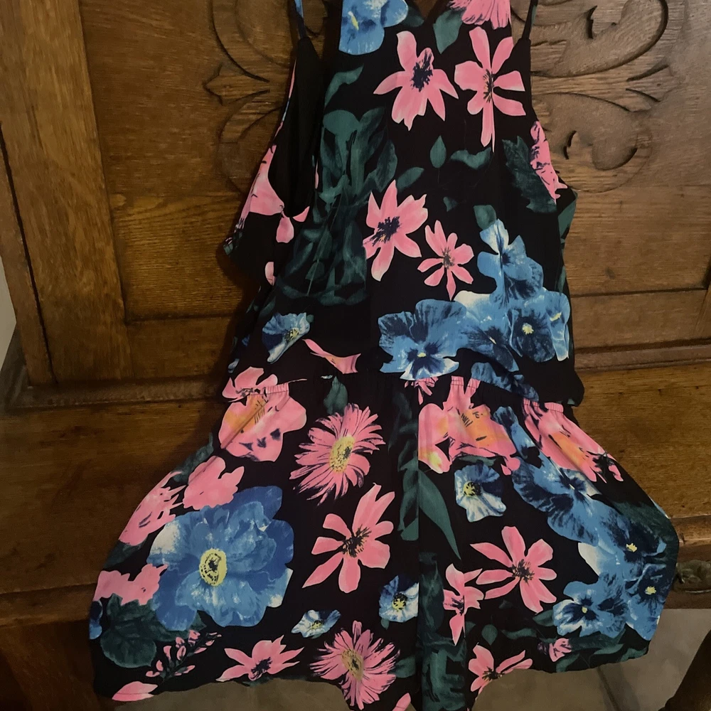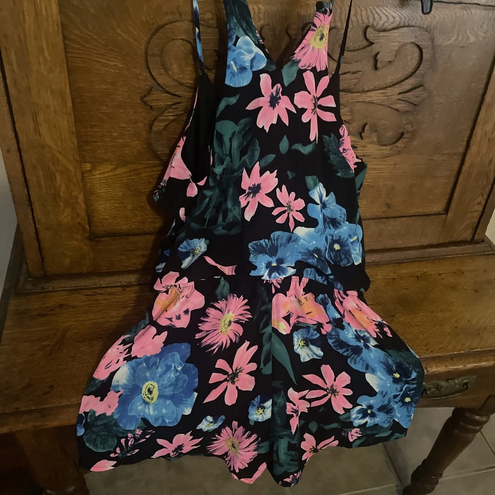 MINE bright floral print tank top shorts summer 1 piece romper women's SM. AS IS due to The missing string hole in the back to button the back with. But it is an easy sew job. Smoke free home. Ask any needed questions:)