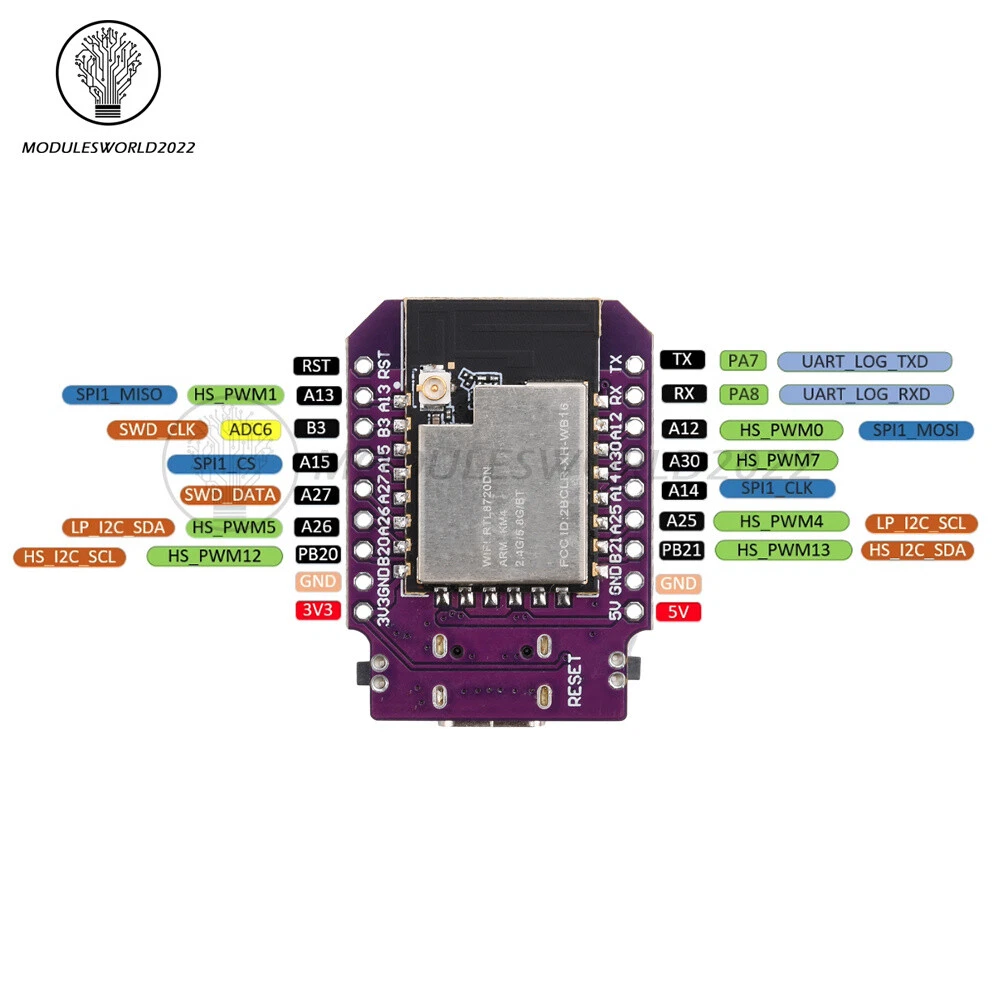 Store Categories Store Categories Other Product View Details Overview MINI BW16 development board is a core development board designed for BW16 module, the board continues the classic design of NodeMCU development boards, leading to the common 1/O to the two sides of the row of pins, the on-board RTL8720 module, the developer can also be connected to peripherals according to their own needs. BW16 is a dual-band Wi-Fi+Bluetooth SoC module based on the RTL8720DN chip. It supports dual-band (2.4GHz or 5GHz) WLAN and low-power Bluetooth 5.0, and integrates an ARM V8 (Cortex-M4F compatible) high-performance MCU, an ARM V8M (Cortex-MO compatible) low-power MCU, a WLAN (802.11a/b/g/n), a MAC, a Bluetooth baseband, an RF baseband and a set of configurable GPIO ports for use in a variety of applications. It also provides a set of configurable GPIO ports for the control of different peripheral devices. Features 1.BW16 has RTL8720 module on board, developers can also connect peripherals according to their needs. 2.BW16 is a dual-band Wi-Fi + Bluetooth SoC module based on the RTL8720DN chip. 3. This development board supports dual-band (2.4GHz or 5GHz) WLAN and low-power Bluetooth 5.0. 4. This development board continues the classic design of NodeMCU development boards, leading to the commonly used 1/O to both sides of the row of pins. 5.BW16 has a high-speed connection interface and USB interface. Specification Wi-Fi frequency range: 2400~2483.5MHz and 5180~5825MHz Wi-Fi protocol: IEEE 802.11b/g/n. 11b/g/n Bluetooth protocol: Bluetooth 5.0 Bluetooth RF: Supports up to 7dBm high power mode Module interfaces: GPIO, SPI, UART, I2C, I2S, IR, LED PWM, temperature sensor, SAR analog/digital converter, general-purpose timer, watchdog timer On-board clock: 40 MHz crystal Operating Voltage: 3.0~3.6V Operating current: Deep sleep mode: 7~8uA; Tx: 257mA ; Rx :50mA Wi-Fi mode: Station/softAP/SoftAP+Station Security mechanism: WAPI, WEP, WPA/WPA2/WPA3-PSK, WPA/WPA2/WPA3-EAP Firmware Upgrade: UART download/OTA (download and write firmware over the network/through the host) Software Development: Support secondary development, support Linux and Windows environment programming User Configuration: AT+ instruction set Size: 35mm*25mm Package Includes 1 x Development Board 2 x Pin (soldered/unsoldered optional) Shipping Policy Payment Method Returns Policy Shipping Policy Payment Method Returns Policy Home Payment Shipping About us Contact us Copyright©2018 datacaciques Home Payment Shipping About us Contact us Store Categories Store Categories Other Product View Details Overview MINI BW16 development board is a core development board designed for BW16 module, the board continues the classic design of NodeMCU development boards, leading to the common 1/O to the two sides of the row of pins, the on-board RTL8720 module, the developer can also be connected to peripherals according to their own needs. BW16 is a dual-band Wi-Fi+Bluetooth SoC module based on the RTL8720DN chip. It supports dual-band (2.4GHz or 5GHz) WLAN and low-power Bluetooth 5.0, and integrates an ARM V8 (Cortex-M4F compatible) high-performance MCU, an ARM V8M (Cortex-MO compatible) low-power MCU, a WLAN (802.11a/b/g/n), a MAC, a Bluetooth baseband, an RF baseband and a set of configurable GPIO ports for use in a variety of applications. It also provides a set of configurable GPIO ports for the control of different peripheral devices. Features 1.BW16 has RTL8720 module on board, developers can also connect peripherals according to their needs. 2.BW16 is a dual-band Wi-Fi + Bluetooth SoC module based on the RTL8720DN chip. 3. This development board supports dual-band (2.4GHz or 5GHz) WLAN and low-power Bluetooth 5.0. 4. This development board continues the classic design of NodeMCU development boards, leading to the commonly used 1/O to both sides of the row of pins. 5.BW16 has a high-speed connection interface and USB interface. Specification Wi-Fi frequency range: 2400~2483.5MHz and 5180~5825MHz Wi-Fi protocol: IEEE 802.11b/g/n. 11b/g/n Bluetooth protocol: Bluetooth 5.0 Bluetooth RF: Supports up to 7dBm high power mode Module interfaces: GPIO, SPI, UART, I2C, I2S, IR, LED PWM, temperature sensor, SAR analog/digital converter, general-purpose timer, watchdog timer On-board clock: 40 MHz crystal Operating Voltage: 3.0~3.6V Operating current: Deep sleep mode: 7~8uA; Tx: 257mA ; Rx :50mA Wi-Fi mode: Station/softAP/SoftAP+Station Security mechanism: WAPI, WEP, WPA/WPA2/WPA3-PSK, WPA/WPA2/WPA3-EAP Firmware Upgrade: UART download/OTA (download and write firmware over the network/through the host) Software Development: Support secondary development, support Linux and Windows environment programming User Configuration: AT+ instruction set Size: 35mm*25mm Package Includes 1 x Development Board 2 x Pin (soldered/unsoldered optional) Shipping Policy Payment Method Returns Policy Shipping Policy We will arrange shipping for you within 24 Hours after payment cleared except the holidays. -We ship items to Worldwide. Thank you! -we will ship out the order in 1-2 business days after payment cleared .Since it is international shipping ,delivery time is about 15--28 business days to arrive to most countries. Payment Method We accept PayPal payment ONLY, and must be received within 5 days from the date of purchase. 2. It is easy and safe for you to pay by credit cards, debit cards, bank transfers and PayPal account balances. 3.Buyers are responsible for import duties,custom fees and taxes, if any, please check your country. Returns Policy 1.We believe our items are so outstanding. We are convinced you will be happy with your Purchase. 2. If you do not satisfy with our items. Please simply return to us within 30 Days in original condition. Just pay for the returned postage. Then we can issue full refund or resend the item to you after the returned item arrived at our warehouse. 3. Please include your eBay ID and item number with any email requests.