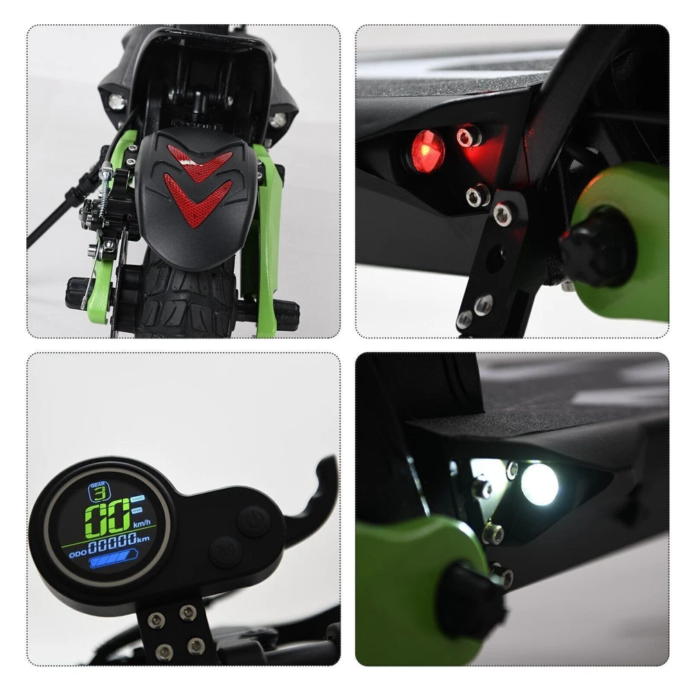 This scooter is a powerhouse! The dual 500W motors give it serious speed and smooth acceleration, handling hills with ease. The 48V battery delivers a solid 18-25 mile range—perfect for commutes. Love the bright lights, responsive brakes, and smooth suspension. Folds easily for storage, though it’s a bit heavy. Worth every penny for the performance!