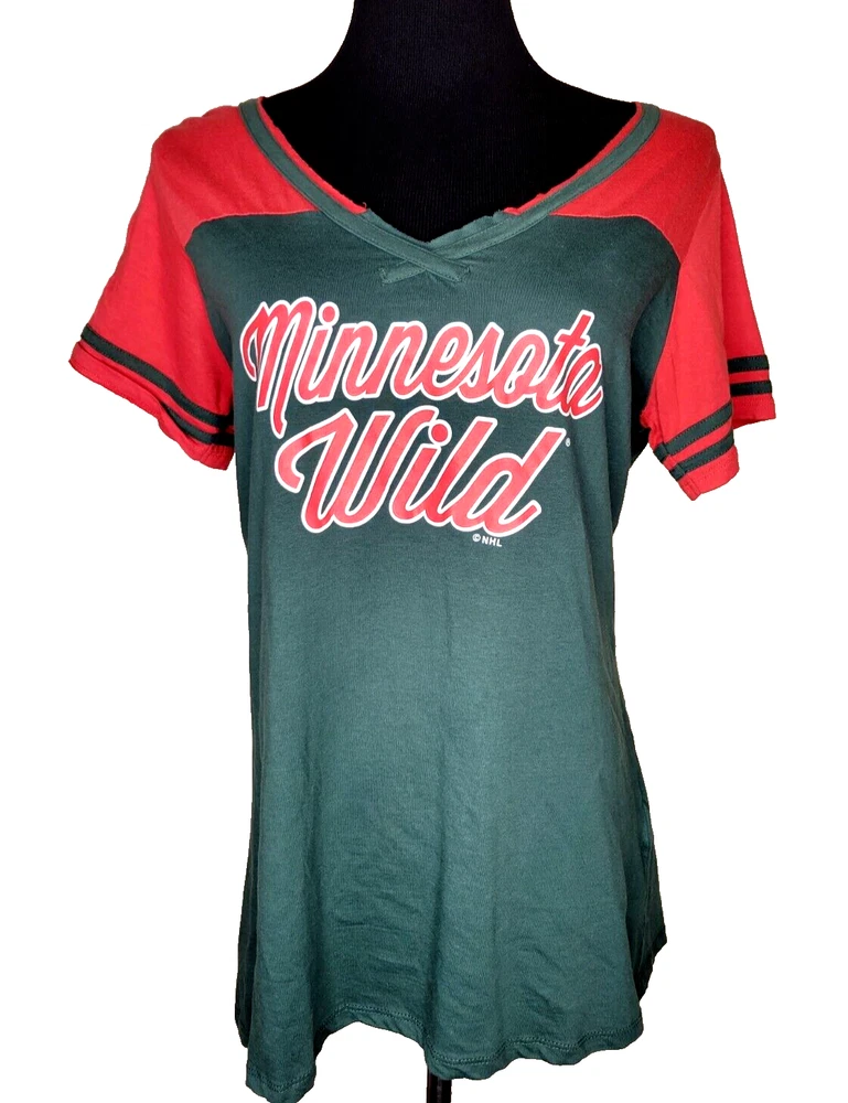 Pro Edge by Knight's Apparel Minnesota Wild NHL Hockey women's XL (15) short sleeve V-neck shirt in red and green. Parise #11 on back. Very nice condition. Chest: 18 1/2" Length: 27"
