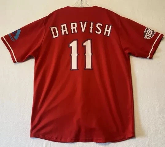 MLB Texas Rangers Men's XL Jersey Yu Darvish Red Button Up Stadium Giveaway Pre-Owned in very good condition. No garment/size tag but based on similar comps with similar chest measurements this would be an XL. See photos or best representation & for measurements. Thank you for looking and supporting my small business!