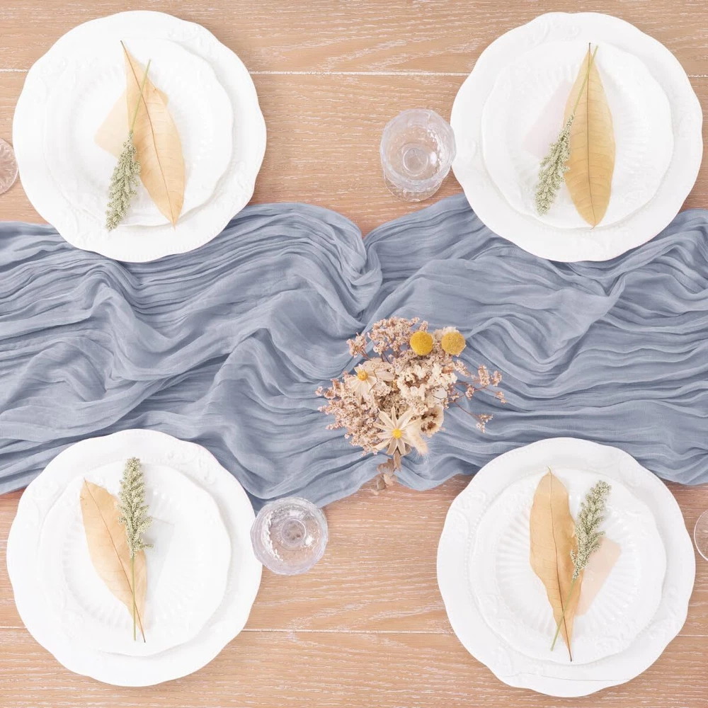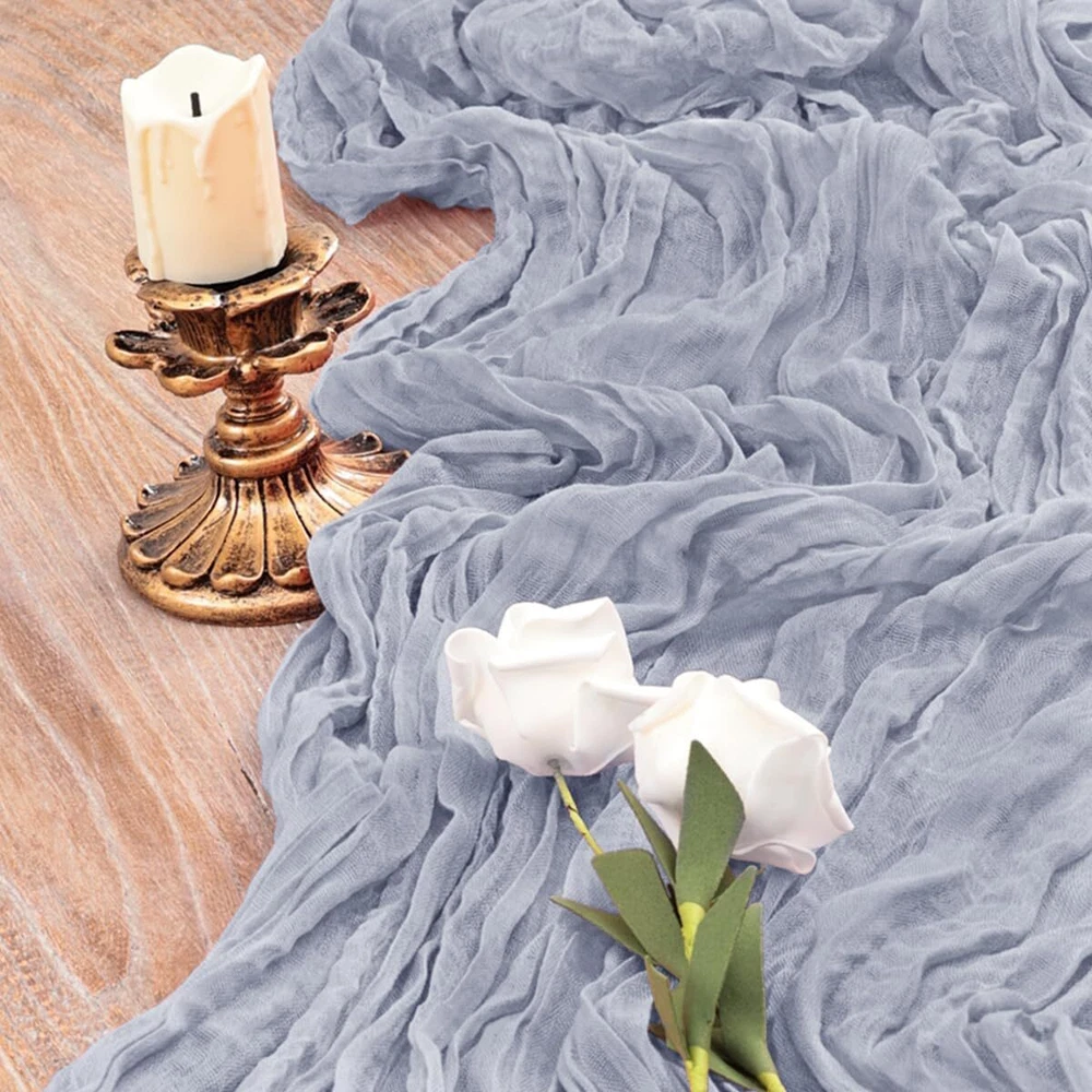 MLMC Cheesecloth Table Runner 10ft Gauze Rustic Grey - 1 Pack, Product Details Style: Country Rustic Product Care Instructions: Hand Wash, Machine Wash, Do Not Iron Product Dimensions: 120"L x 35"W Manufacturer: MLMC Item Weight: 4.6 ounces Country of Origin: China Color: Grey Material: Cheesecloth Size: 10ft - 1 Pack Brand: MLMC Pattern: Solid Specifications: Indulge in our 35x120 inches cheese cloth table runner—a 10 ft high-quality cheesecloth piece. Quality Craftsmanship: Wrinkled cheesecloth table runner are crafted from soft cheesecloth, hand-made, hand-dyed and sealed on all sides for lasting charm. Our bohemian-style runner can effortlessly elevate any event. Versatile Style: Natural wrinkle texture makes it ideal for weddings, baby showers, Birthday, picnics, parties, photography styling, receptions and more. Complete the Look: Elevate your table setting further by exploring our store's collection of matching napkins crafted from the same exquisite material. Instructions: Hand wash in cold water or machine wash in laundry bag with mild laundry detergent. In order to maintain the wrinkle texture, it's best not to iron.