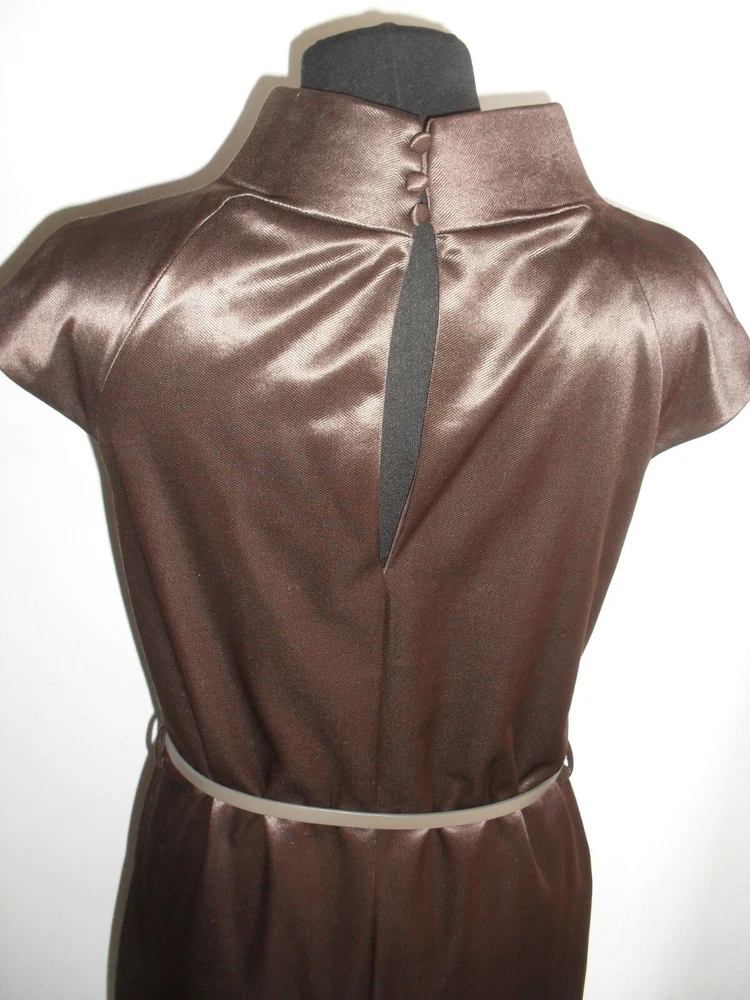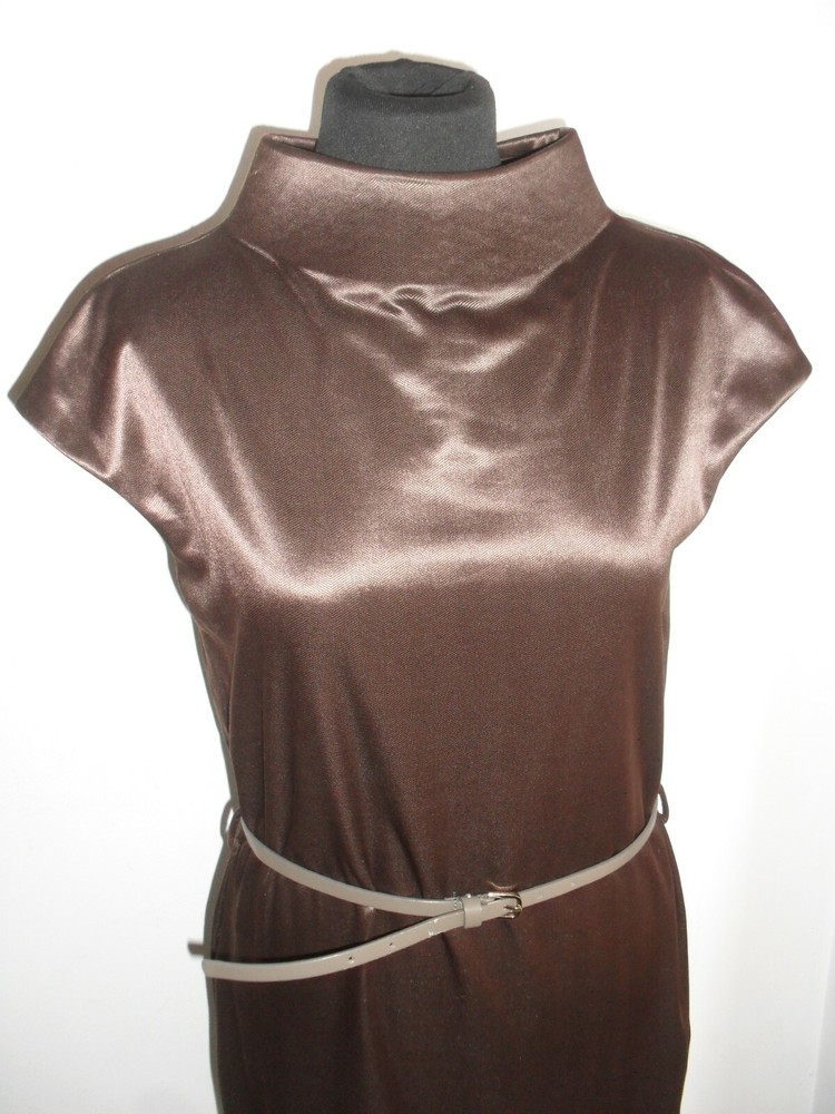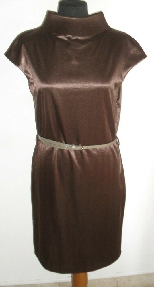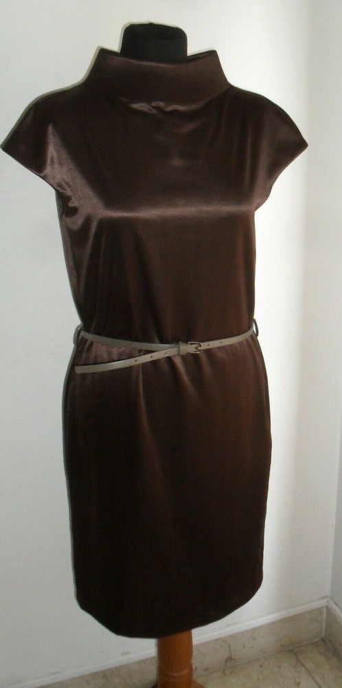VENDO BELLO E COMODO VESTITO MNG , TUTTO DI COLORE MARRONE IN TESSUTO LUCIDO CON UN IMPORTANTE COLLO ALTO IMBOTTITO E DIETRO SULLA NUCA LA CHIUSURA CON PICCOLI BOTTONCINI , IL MODELLO E' MORBIDO E INDOSSATO E' BELLISSIMO ( VEDI FOTO ) LA MISURA E' UNA L , MA PER MAGGIORE PRECISIONE VI DO' LE MISURE NEL DETTAGLIO PRESE DA CUCITURA A CUCITURA CON IL CAPO POGGIATO SU UN PIANO , SPALLINE 40 SENO 50 LUNGHEZZA TOTALE 95 , APPROFITTATENE DEL COMPRALO SUBITO AD UN PREZZO AFFARE , ACCETTO VARI TIPI DI PAGAMENTO GUARDA ANCHE LE ALTRE MIE INSERZIONI , COSE BELLE A BUON PREZZO E PAGHI UNA SOLA SPEDIZIONE PER L' ACQUISTO DI PIU' OGGETTI .