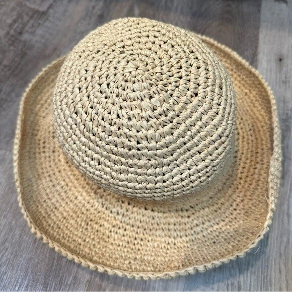 MODERN MONARCHIE Hat Small Toquilla Straw Handmade Sun Beach Broad Rim Neutral Only has 1 chin strap Brand new with tag 7