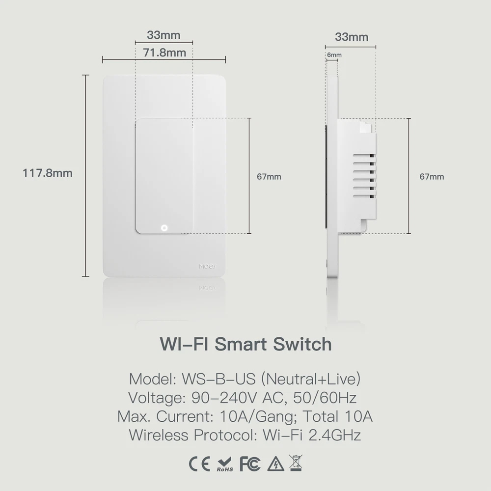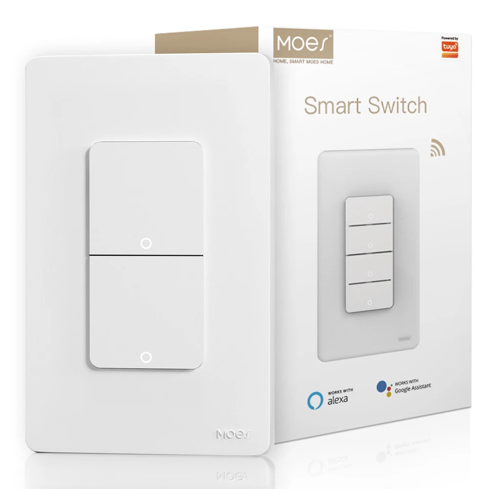MOES WiFi Smart Light Switches Wall Switch Combo Alexa Google APP Remote Control 【 Note 】This wifi smart light switches only supports 2.4GHz network and reqiures neutral wire. This switches allows to turn lights on or off, but no smart bulbs or dimming. 【 For Limited Space 】This MOES switches allows control of 1/2/3/4 fixtures from one location; shallow body design fits standard wall boxes and takes up only 1 gang switch space which is greatly saving space and allows more control within limited space. You can update original switches to combination with other types of switches or wall outlets. 【 Voice Control 】Use simple voice commands with Alexa and Google Assistant to control wifi smart switches, making it ideal for those who prefer hands-free operation, especially during nighttime when finding light switches can be challenging. 【 Remote Control 】With this wifi switches, people can remotely control the lights by MOES/Tuya APP anytime and anywhere. You don't need to worry about leaving the lights on when in travel, office or staying away from home for a long time. 【 Timer Schedule 】Use the MOES/Tuya App to easily set schedules, timers, and scenes for daily life. Set a timer to turn off the lights at night to cultivate a good habit for children to go to bed early. Package Includes: 1*Smart Light Switch 1*User Manual 2*Screws Payment Shipping Return Feedback Contact us Payment We only accept payment methods requested by eBay. You can checkout and pay immediately after the auction ends or you complete the purchases. If you have any problems about payment, please contact us via e B ay message. Shipping 1.Please allow up to 48 hours for shipping arrangement after payment confirmed. We ship items only to the e B ay address. We will not be responsible for any loss because of wrong or undeliverable shipping address. 2.The shippment usually takes 3-5 business days(local warehouse) or 8-15 business days(foreign w arehouse ),Saturday and Sunday excluded, if you need the item urgently, please contact us for detail before purchase . 3.We do not offer in store pick up service, hope you can understand. Return 1.If you are not satisfied with our products. Please kindly contact us before you open the return request. We provides 30 days Money Back or Exchangement Warranty. 2.Please Kindly contact us for the RMA No.and address before returning the item back. Feedback 1. Please contact us before leaving a neutral or negative feedback. We would try our best to help you solve the problem. Please allow us to reply your email within 24 hours. 2.We will provide the service as best as we can🥰, cause the feedback and is what we are striving for. Please email me through "My Messages" or "Contact seller" if you have any question about our listings or your purchasing. Contact us 1. Please contact us if you are not satisfied with the item after receive it. Just contact us using the " Ask the seller a question" link on eBay. 2.All replies will be sent to your email, if you don't get response within 1-2 business days, pls check your My messages' in case your email provider has an overly-aggressive spam filterblocking eBay's emails. Please email us AGAIN.Thanks!