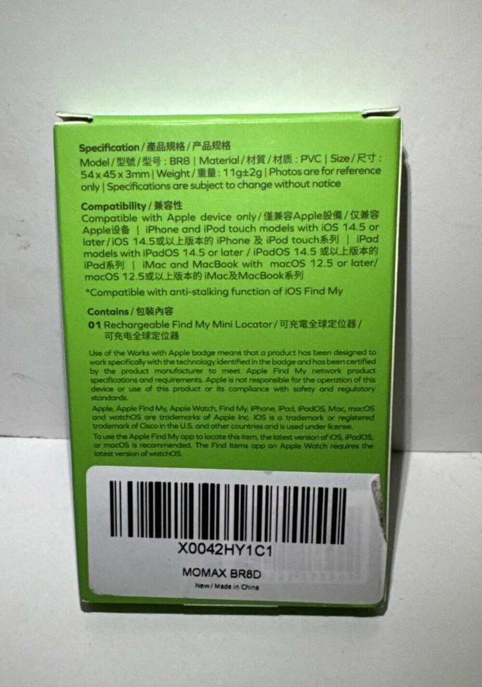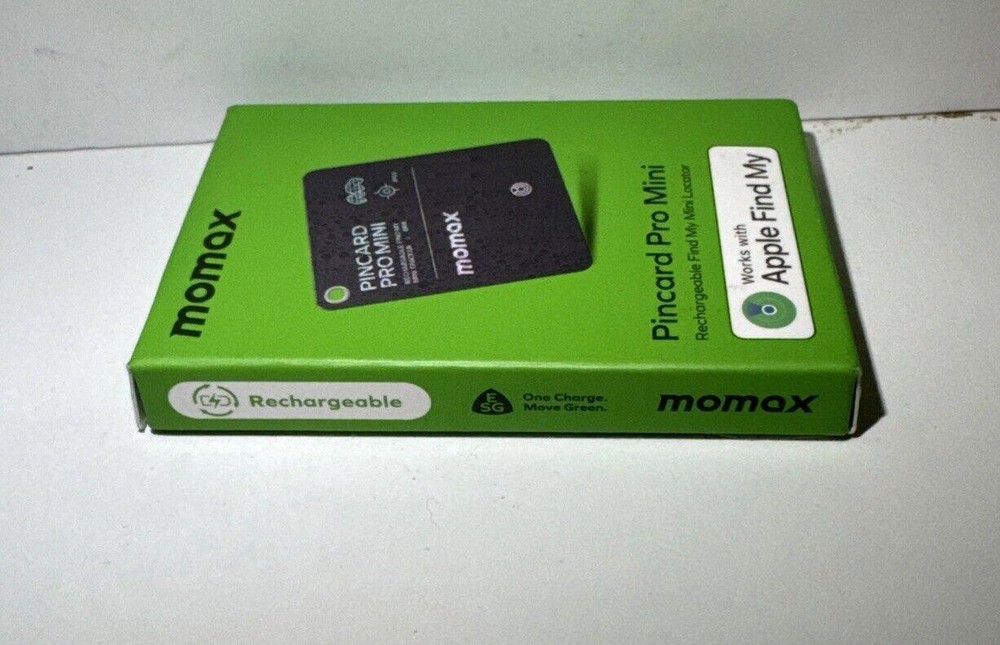MOMAX PinCard Pro Mini Rechargeable Tracker AIRTAG - Apple Find My iPhone - NEW. Condition is New. Shipped with USPS Ground Advantage.