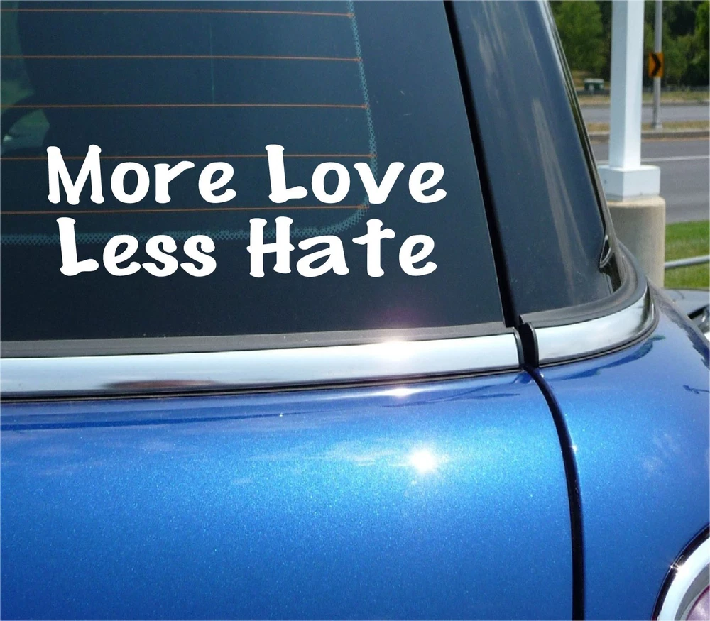 MORE LOVE LESS HATE DECAL STICKER PEACE CHRISTIAN FAITH CHURCH CAR TRUCK WINDOW