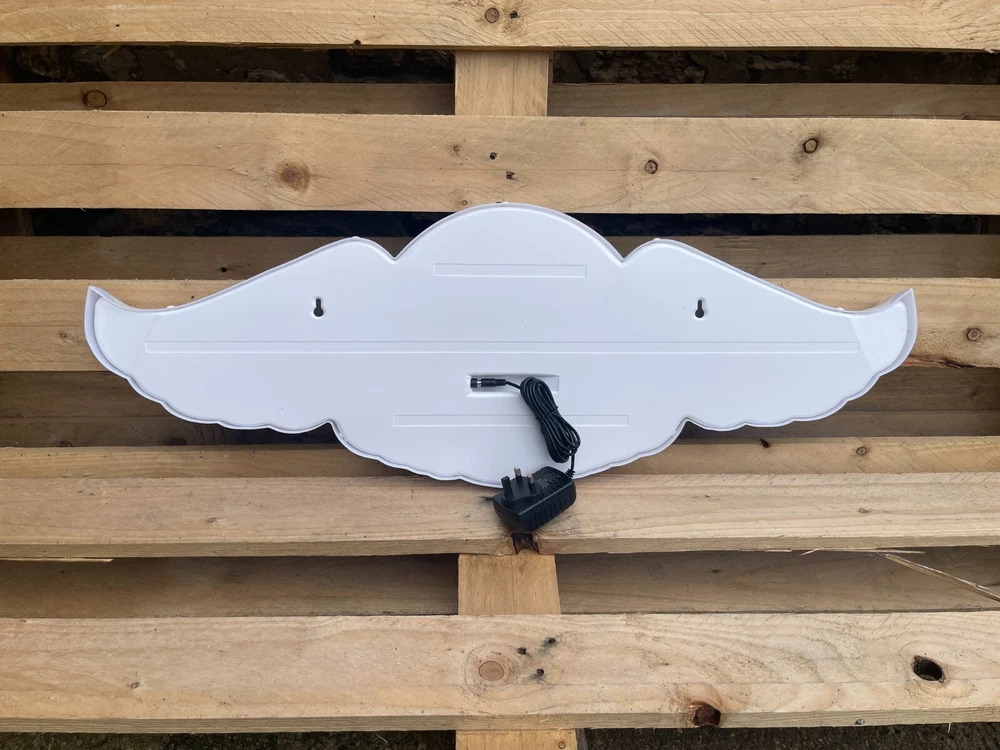MORGAN LED LIGHT UP WALL SIGN 88CM X 30.5CM X 5CM (34.5" X 12" X 2") keyholes to the rear for hanging Supplied with 3 meter length cable and adaptor of your choice LED ILLUMINATED WALL SIGN A unique concept, for your Office, Home Cinema, Games Room, Garage, Man cave, Shed, Bar, Den Restaurant or Business MANUFACTURED IN THE UK Shipping Dispatched by tracked courier service