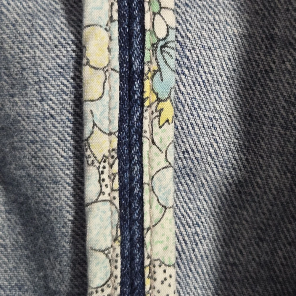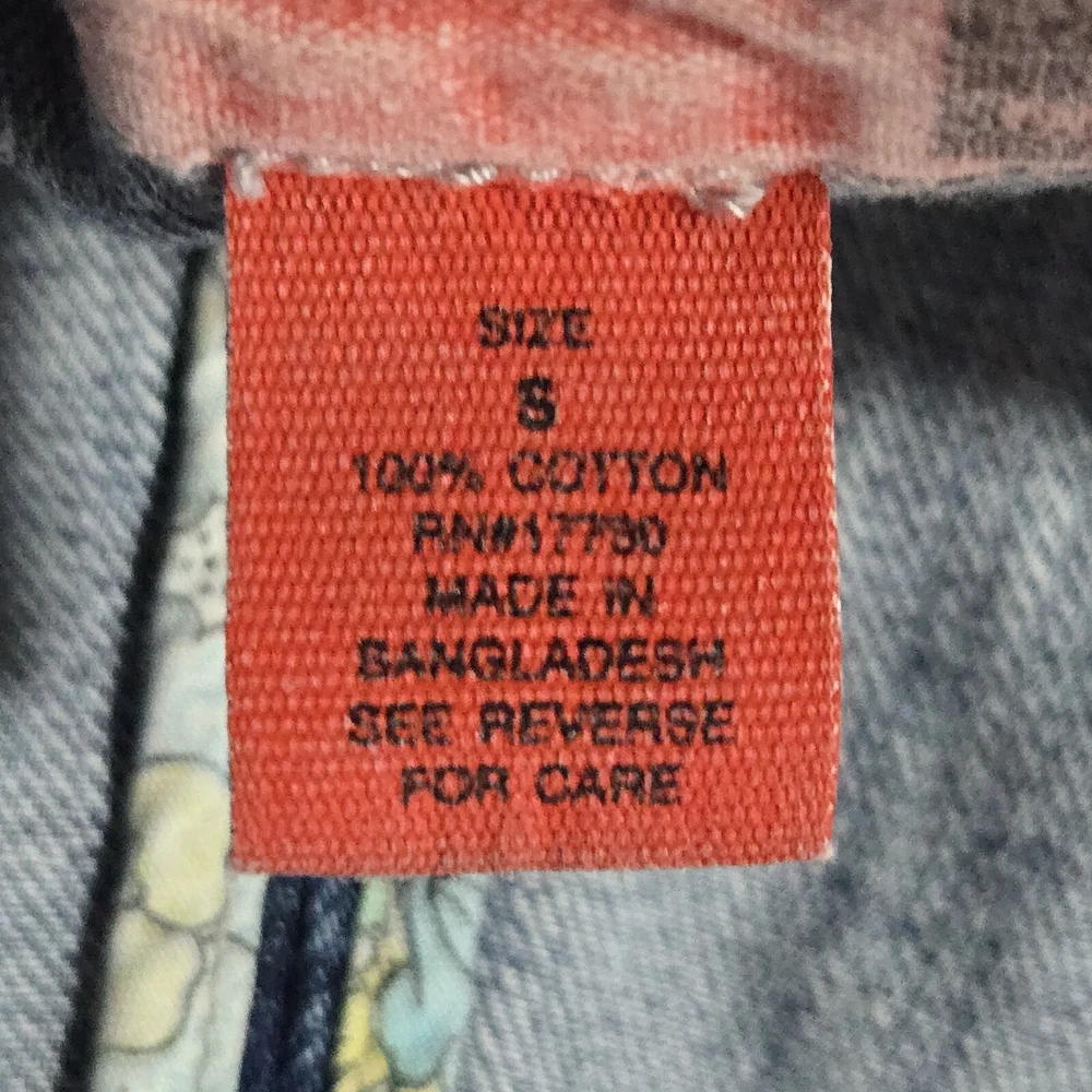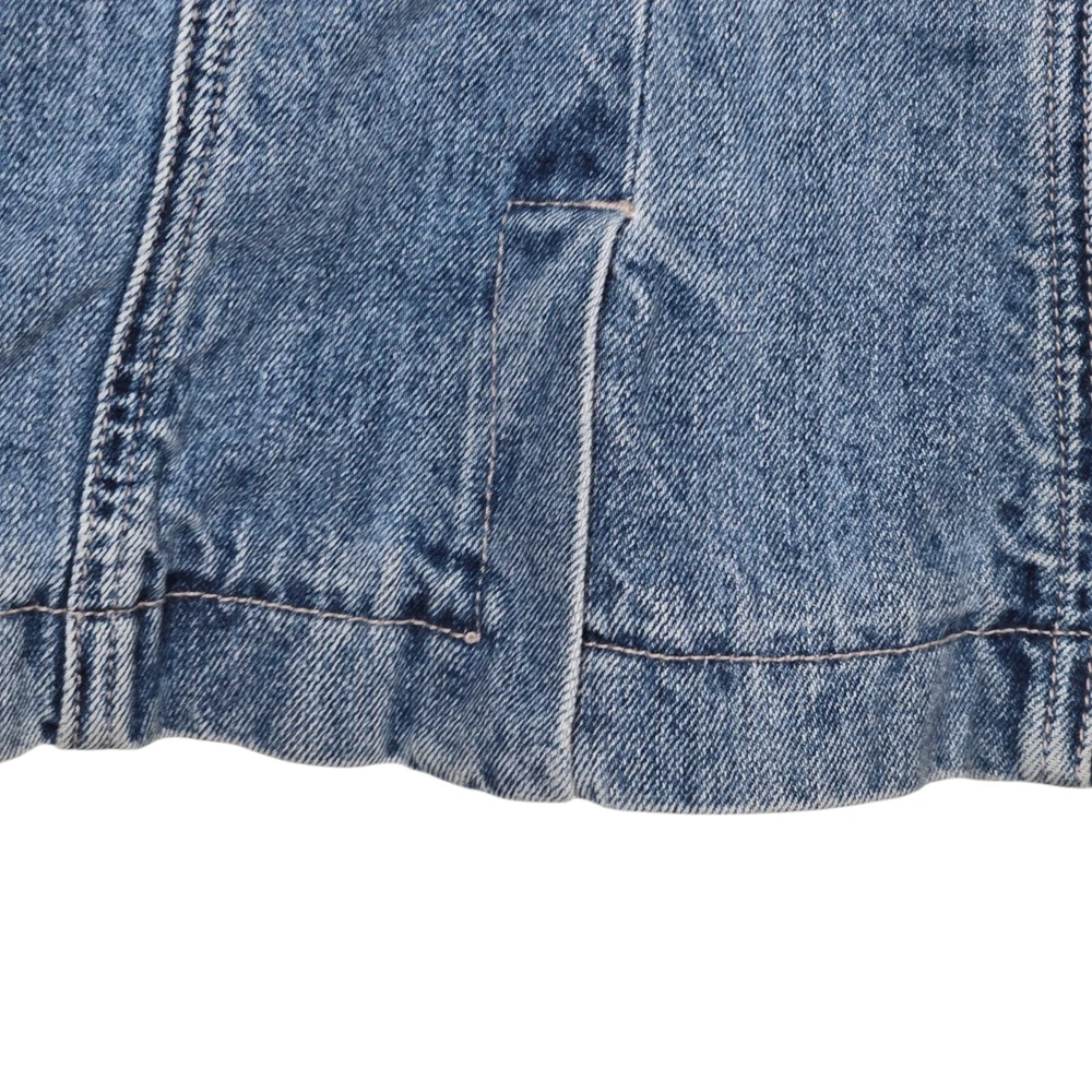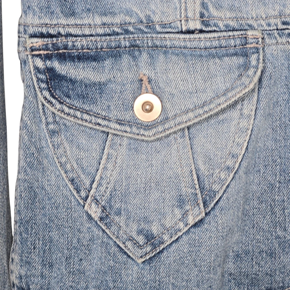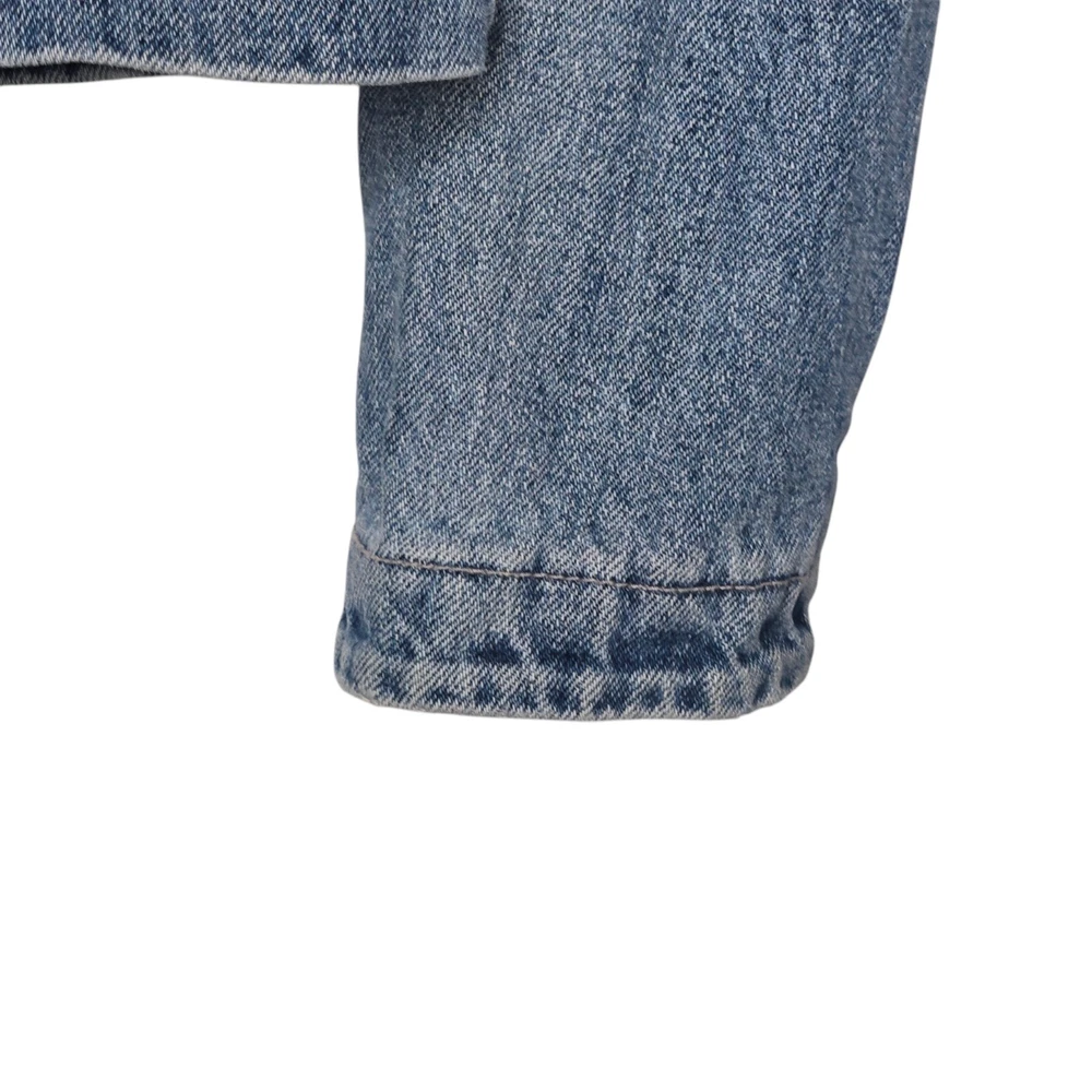 Elevate your wardrobe with this vintage style denim blazer from MOSSISSUE by MOSSIMO. This blazer features a classic, retro-inspired look that is perfect for any occasion, whether it's a casual day out or a business meeting. The blazer is made from high-quality cotton denim and features a button closure, notch flat lapels, and patch flap pockets. The blazer is a size small and has a regular fit, making it perfect for most body types. It is machine washable and can be worn in any season. With its timeless style and solid pattern, this blazer is a must-have addition to any fashion-forward woman's wardrobe. It has silver hardware and a fitted silhouette. This blazer is a one of a kind must have! It's measurements are 17" front chest and 24" length. It is made of 100% cotton.