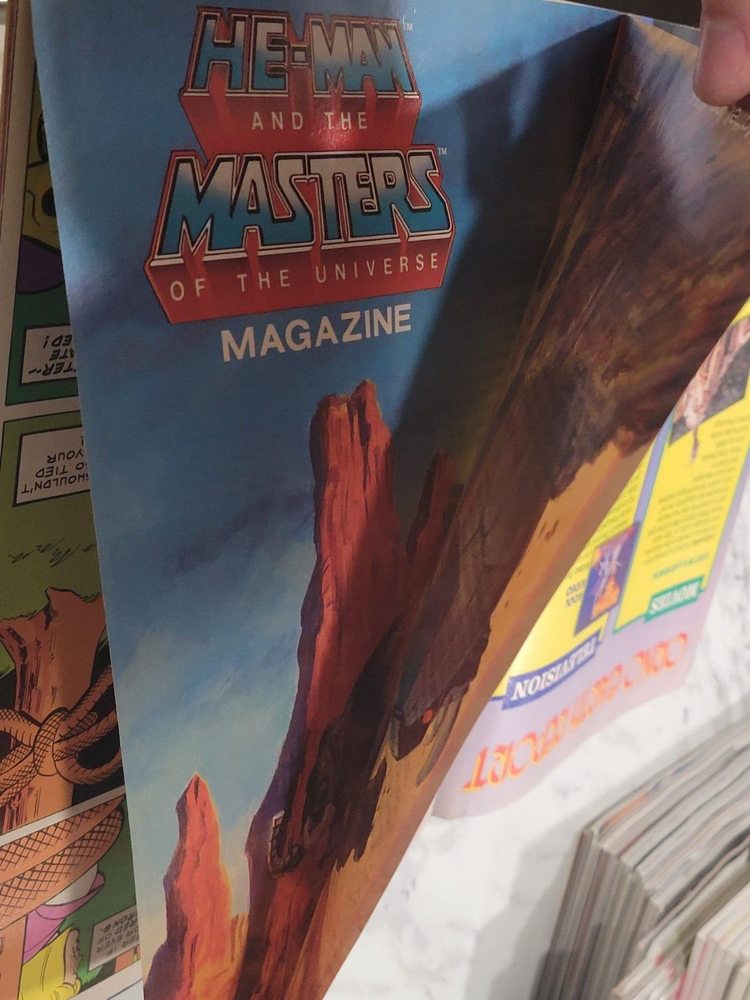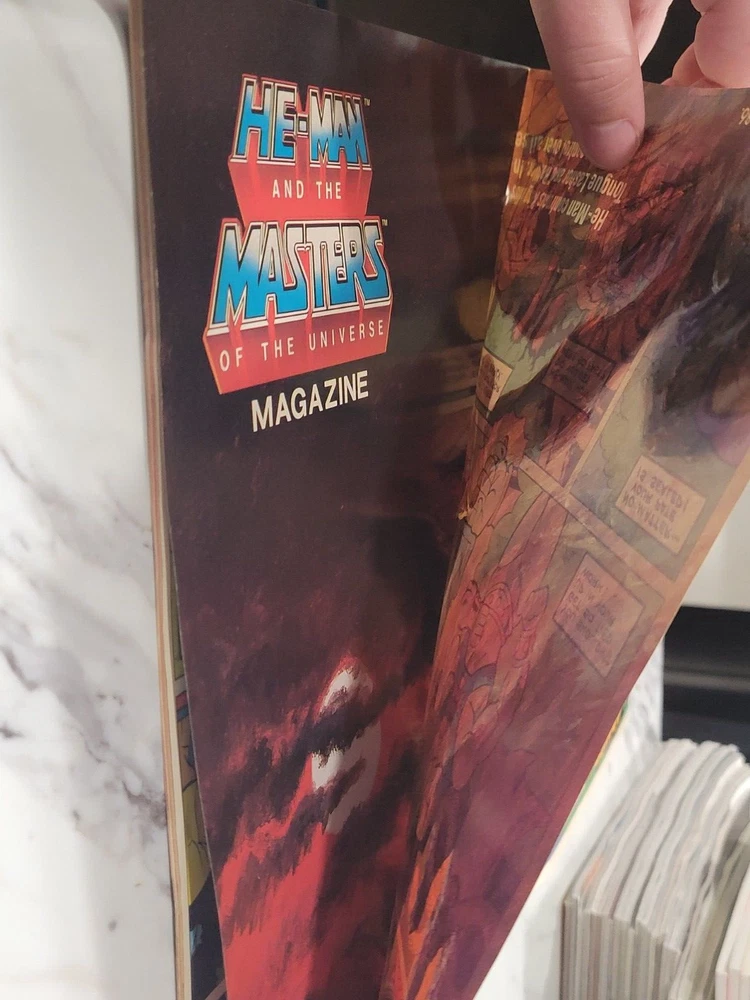 MOTU He-Man And The Masters Of The Universe Magazine SUMMER 1986 W/ Posters. (Poster #14 And Poster #15). There is some staining pictured that goes throughout most of the magazine.