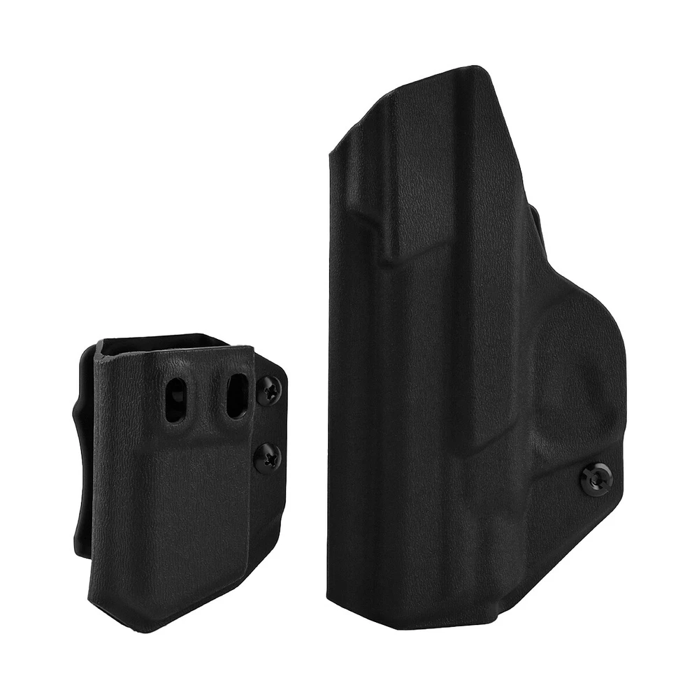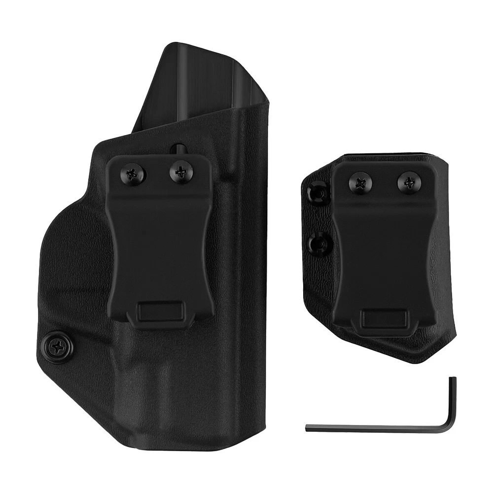 Product Description IWB Holster Right Hand Fits S&W M&P Shield/Shield Plus M2.0 9mm/.40 3.1" Pistol Holster & Universal 9/.40 Double Stack Mag Carrier Features: 1 【Full Cover Trigger, No Scratch, No Jitter】The holsters for Smith & Wesson M&P Shield/Shield Plus M2.0-9mm/.40 3.1" Pistol Holster, full covering all access to the trigger, securely retained with minimal drag, which can avoid all possible accidents. Rounded, Hand Finished Edges, adds to a layer of comfort without digging into the body or thigh, the trigger guard is intentionally undercut to promote a higher grip on the and allow for magazine release while the firearm is fully holstered. 2 【FIT LIKE A GLOVE WITH AN AUDIBLE CLICK】Thanks to the Adjustable Retention Screw, you can dial in perfection with a Phillips Screwdriver. The inherent positive retention “positive click SNAP”sound,ensures the firearm is secure when holstered. 3 【Adjustable Cant & Retention Pressure】The cant settings are easily adjustable from 0 to 30 degrees. Be it appendix, strong-side, kidney carry, it allows for a perfect grip on the for Smith & Wesson M&P Shield/Shield Plus M2.0-9mm/.40 3.1". 4 【1.5'' Belt Fit Perfect】Smith & Wesson M&P Shield/Shield Plus M2.0-9mm/.40 3.1" IWB holster belt clip is suitable for 1.5'' belt, with hook in buttom, it stick firmly in your belt when drawing and holding. 5 IWB/OWB Mag Carrier is compatible fits virtually every 9mm/.357 Sig/.40 Double Stack and Staggered Stack Magazine,Including but not limited to for Glock models 17,19,19x,22,23,25,26,27,28,31,32,33,34,35,37,38,39 and Glock 43x/MOS,Glock 48/MOS,Sig P320/P365/P365 SAS/P365 SAS w/P365X ,S&W M&P Compact, S&W M&P M2.0/PLUS,CZ P07/P10C,H&K VP9/VP40/VP9SK,Springfield armory XD/MOD.2/XDM/HELLCAT,Taurus PT111 G2/G2C/G3C etc. 6 High quality nylon material, durable and reliable for long life. Specifications: Material: Nylon Size: 15.7*8.6*2.9 CM Weight: 67g Pistol holster type: IWB Hand orientation: Right Fit belt size: 1.5" For pistols: Fits S&W M&P Shield/Shield Plus M2.0 9mm/.40 3.1" ( NOT fit attachments like light/laser ) Mag carrier type: IWB/OWB Mag carrier Hand orientation:Right/Left For magazines: 9mm/.357 Sig/.40/ Double Stack and Staggered Stack Size: 8.1*5.6*4.3 CM Weight: 46g Package Included: 1x Gun holster 1x Mag carrier 1x Wrench Payment Shipping Terms Returns Contact Us We accept PayPal only. If buyer want to delay the payment because of financial problem, please contact me by the ebay message within 3 days Payment via PayPal (PayPal accepts all major credits/debit cards and eCheque) ECheque payment will tak e 3-10 days to get clear, thus DELAYing the shipment. Handling time: 1 business day (Orders are not processed on weekends & holidays) Tracking information will be sent once item is shipped. Local pick-up is unavailable at the moment. For international shipping and shipping to Guam, Hawaii and Alaska, Please contact us before placing the order. Item is shipped to ebay address. Leaving correct address can minimize delay. For any issues with Defects, Return, Item Exchange request, please contact us first and send us a message first before opening any type of case or request. We devote ourselves making EVERY CUSTOMER in 100% Satisfactory and resolve any problem. We highly value and appreciate your business. Thank you. No returns will be accepted without an RMA number. Please contact us for the RMA number. Return is acceptable within 30 days of delivery. Return for replacement or money back is optional. Returned items must be in the brand new, unaltered and resalable condition. Seller is not responsible for any labor cost, expense in a dealer store, or damage due to wrong installation. Return is accepted within 14 days after the buyer's receiving the item. (Excluding contrived damagement or misusage).100% money-back Guaranteed! All product will be tested in 100% before delivery.If the item is defected by the processing of postage,Buyer has up to 14 days from date of receipt for exchange of a new one.All shipping charges for returned products are to be paid by the buyer,Please contact us for the return address All messages will be answered within 24 office hours. Please contact us either by clicking "contact seller" in the "purchase history" section or simply click "ask a question" at the bottom of this page. If you are unsatisfied with our item or service, please contact us before leaving any feedback. We are committed to resolve all issues in a friendly and satisfactory manner. We always reply to messages within 2 business days (off-duty at weekend). If you do not get a response from us, then please check your junk or spam mailbox. Payment We accept PayPal only. If buyer want to delay the payment because of financial problem, please contact me by the ebay message within 3 days Payment via PayPal (PayPal accepts all major credits/debit cards and eCheque) ECheque payment will tak e 3-10 days to get clear, thus DELAYing the shipment. Shipping Handling time: 1 business day (Orders are not processed on weekends & holidays) Tracking information will be sent once item is shipped. Local pick-up is unavailable at the moment. For international shipping and shipping to Guam, Hawaii and Alaska, Please contact us before placing the order. Item is shipped to ebay address. Leaving correct address can minimize delay. Terms For any issues with Defects, Return, Item Exchange request, please contact us first and send us a message first before opening any type of case or request. We devote ourselves making EVERY CUSTOMER in 100% Satisfactory and resolve any problem. We highly value and appreciate your business. Thank you. No returns will be accepted without an RMA number. Please contact us for the RMA number. Return is acceptable within 30 days of delivery. Return for replacement or money back is optional. Returned items must be in the brand new, unaltered and resalable condition. Seller is not responsible for any labor cost, expense in a dealer store, or d