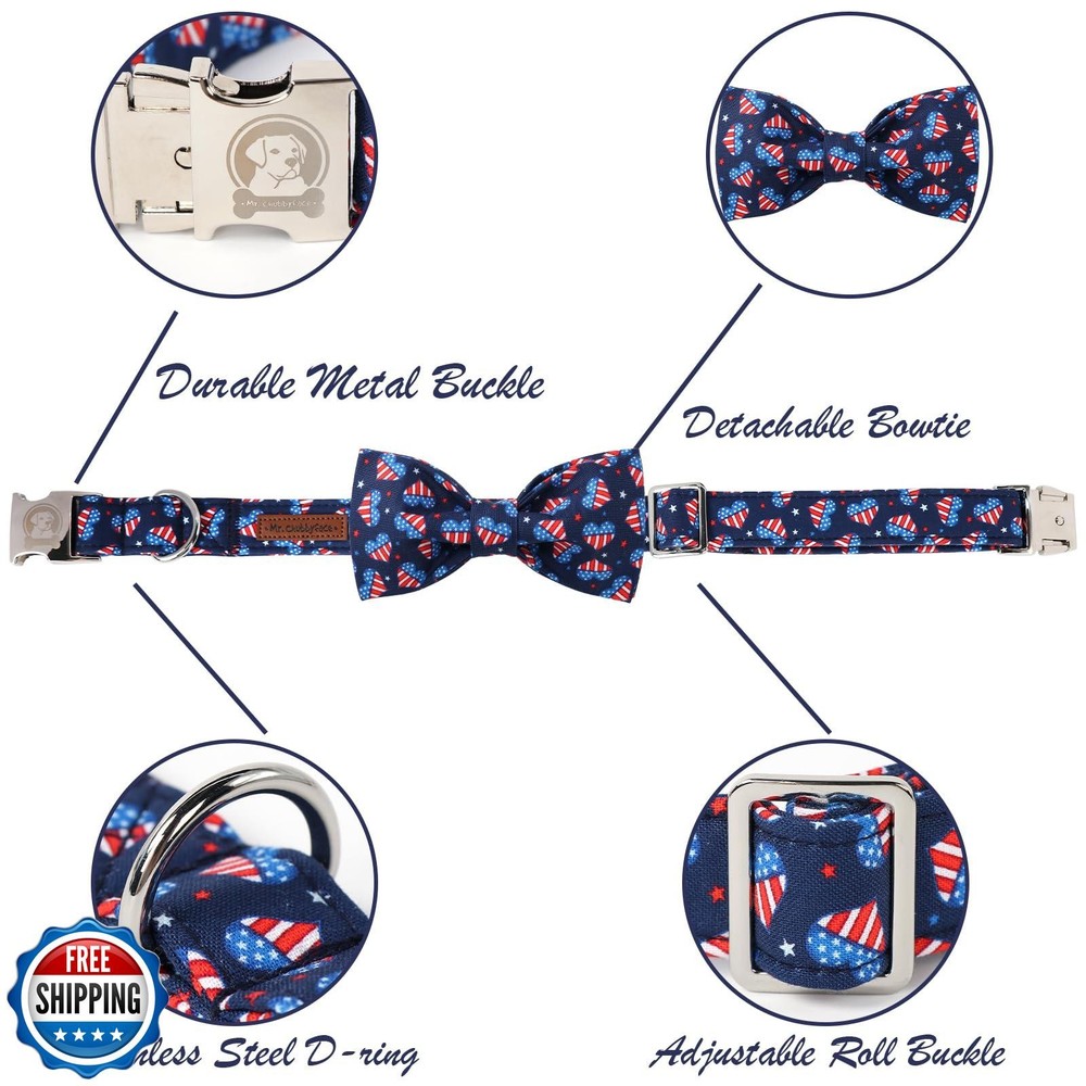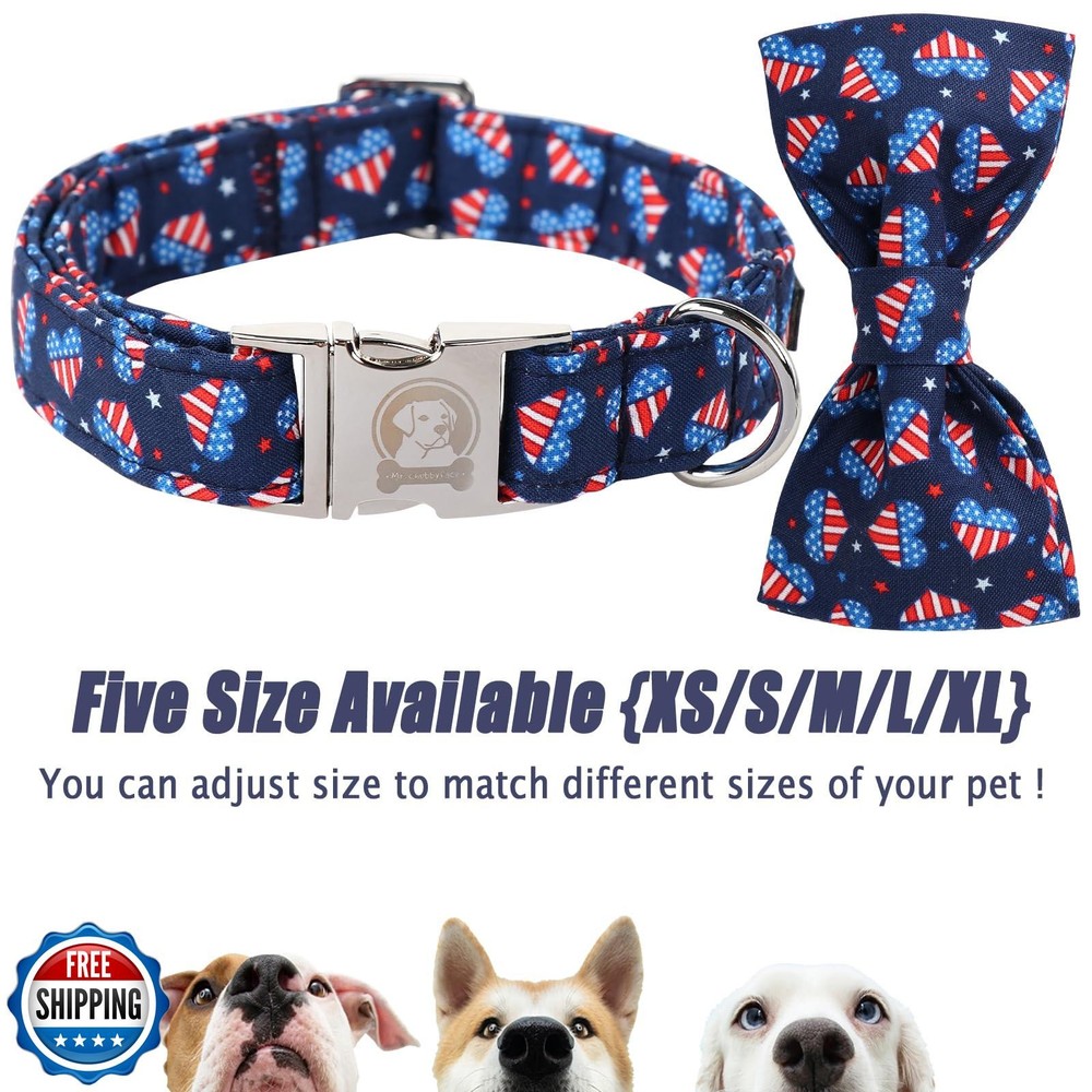 MR. CHUBBYFACE Heart Flag Dog Collar with Bow Cute Brown Dog Collars Bowtie Spring Girl Boy Pet Collar for Small Medium Large Dogs Features SIZE:M Collar(Width:1'', Length:13.3-20.8''),Please measure your dog's neck and check the size chart before choosing this collar, so that you can choose a collar that fits your dog's neck better. MATERIAL: This Spring dog collar is made of Premium cotton, a light and breathable fabric for dog comfort,It will not irritate your dog's skin, and it is also easy to clean, just hand wash to avoid damage to the collar surface caused by machine washing. UNIQUE DESIGN: Our collars are designed with a sturdy metal buckle, which is stylish and durable, easy to put on and take off quickly. This collar comes with an adjustable roll buckle and a convenient D-ring, which is perfect for small and medium dogs, giving your dog a comfortable wearing experience. USAGE SCENARIOS:This series of collars can be used in your daily activities. Whether you are attending a birthday party or daily outdoor activities. Use our lightweight and breathable dog collars to make your dog comfortable and fashionable. BEST SERVICE :If there is any problem with the product, please communicate with us, we will definitely give a satisfactory solution in 24 hours. Shipping Free & Fast Shipping: We offer free shipping to most of the USA with a normal delivery time of 3-7 days. However, due to the current situation, additional delivery time (up to 3 weeks) may be required for some items. Alternative Carriers: We may use alternative carriers (e.g., USPS, FedEx, UPS) to ensure your package arrives safely and on time. Due to the use of multiple carriers, we are unable to provide a tracking number automatically. Handling Time: Orders are processed and shipped within 1-2 business days of receiving cleared payment. Shipping Restrictions: Shipping to Alaska, Hawaii, Puerto Rico, Guam, and other US territories may incur shipping charges or delivery restrictions. Please contact us before ordering, or your order can be refunded/cancelled. State Restrictions: Certain items may not be shipped to California due to state regulations. Contact for Tracking Updates: If you require tracking updates or have any concerns about the delivery of your order, please feel free to contact us, and we will be happy to assist you. Return Policy 30-Day Hassle-Free Returns: If you are not completely satisfied with your purchase, you can return the item for free within 30 days of receiving it for a full refund or exchange. Easy Return Process: Contact us, and we will provide you with a prepaid return shipping label and detailed instructions. No Restocking Fee: There are no restocking fees for returns. However, the buyer is responsible for return shipping costs if the return is not due to a seller"s error. Refund Processing: Refunds will be processed within 1 business day of receiving the returned item in its original condition. Feedback Your feedback is extremely important to us. We strive to provide the best products and customer service possible. If you are satisfied with your purchase, please take a moment to leave us a positive review. If you have any concerns or issues with your order, please contact us before leaving negative feedback. We are committed to resolving any problems and ensuring your satisfaction. Contact Us If you have any questions or concerns, please feel free to reach out to our customer support team. You can contact us through the eBay messaging system. We are available Monday to Friday, 9:00 am to 5:00 pm EST, and we will do our best to respond to your inquiry within 24 hours. Thank you for supporting our small family business!