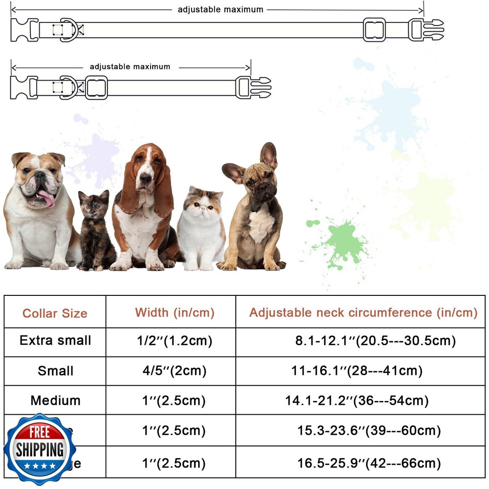 MR. CHUBBYFACE American Flag 4th of July Dog Collar Adjustable Pet Collar Independence Day Collar Red White and Blue Designer Pattern for Small Medium Large Dogs Features Excellent Material: MR.CHUBBYFACE dog collar is made of high density polyester, which is soft, breathable and no tearing. Metal D-ring is waterproof to add durability and will not be broken. The dog collar for medium dogs is easy to wash by hand. Thoughtful Details: Plastic buckle design is so strong that the dog can't break free easily, the metal D-ring can be connected to the dog leash. The straps are adjustable to provide maximum comfort and reliable fit. Girl dog collars can be adjusted for all kinds of dog shape for xsmall, small, medium and large dogs. Unique Design: MR.CHUBBYFACE specializes in designing various of stylish patterns from small medieum and large dogs. This red white and blue dog collar is designed for spring and summer daily wear, the color is bright for girl and boy dogs, it is prominent and eye-catching. Durable Dog Collar Size:: All pictures are taken with our production samples from a size of Medium (Width 1", Neck Size 13.5"-22"). X-Small Width 5/8", Neck Size 8"-12",Small Width 4/5", Neck Size 10"-16", Large Width 1.2", Neck Size 16"-24". The dog in the final model picture is using a size S collar. Please measure your pets carefully to make a safe and fit purchase. 100% Satisfied Guarantee: The cute pet collar is very easy and convenient to use whether it is indoor or outdoor, hiking or running. If you have any questions, please contact us and we will reply to you within 24h. Shipping Free & Fast Shipping: We offer free shipping to most of the USA with a normal delivery time of 3-7 days. However, due to the current situation, additional delivery time (up to 3 weeks) may be required for some items. Alternative Carriers: We may use alternative carriers (e.g., USPS, FedEx, UPS) to ensure your package arrives safely and on time. Due to the use of multiple carriers, we are unable to provide a tracking number automatically. Handling Time: Orders are processed and shipped within 1-2 business days of receiving cleared payment. Shipping Restrictions: Shipping to Alaska, Hawaii, Puerto Rico, Guam, and other US territories may incur shipping charges or delivery restrictions. Please contact us before ordering, or your order can be refunded/cancelled. State Restrictions: Certain items may not be shipped to California due to state regulations. Contact for Tracking Updates: If you require tracking updates or have any concerns about the delivery of your order, please feel free to contact us, and we will be happy to assist you. Return Policy 30-Day Hassle-Free Returns: If you are not completely satisfied with your purchase, you can return the item for free within 30 days of receiving it for a full refund or exchange. Easy Return Process: Contact us, and we will provide you with a prepaid return shipping label and detailed instructions. No Restocking Fee: There are no restocking fees for returns. However, the buyer is responsible for return shipping costs if the return is not due to a seller"s error. Refund Processing: Refunds will be processed within 1 business day of receiving the returned item in its original condition. Feedback Your feedback is extremely important to us. We strive to provide the best products and customer service possible. If you are satisfied with your purchase, please take a moment to leave us a positive review. If you have any concerns or issues with your order, please contact us before leaving negative feedback. We are committed to resolving any problems and ensuring your satisfaction. Contact Us If you have any questions or concerns, please feel free to reach out to our customer support team. You can contact us through the eBay messaging system. We are available Monday to Friday, 9:00 am to 5:00 pm EST, and we will do our best to respond to your inquiry within 24 hours. Thank you for supporting our small family business!