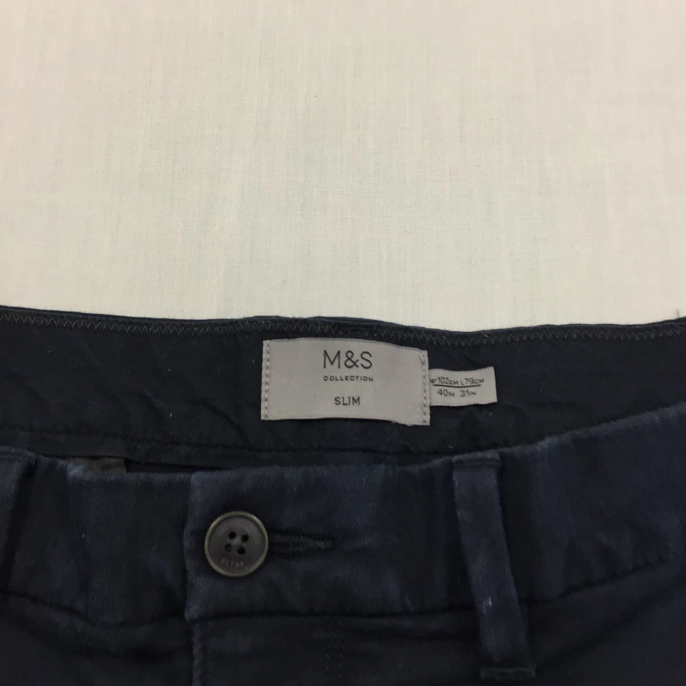 Material: Cotton Blend Fabric Type: Canvas Type: Trousers Accents: Button Garment Care: Machine Washable Vintage: No Occasion: Business, Casual, Travel Seller Notes: “Good used condition, check below for full description & photos.” Handmade: No Fit: Regular Inside Leg: 30 in Season: Autumn, Spring, Summer, Winter Size Type: Regular Department: Men Leg Style: Straight Colour: Blue Pattern: No Pattern Rise: Mid (10-12 in) Personalise: No Size: 40 Waist Size: 40 in Pocket Type: Coin Pocket Closure: Button Brand: Blue Harbour Country/Region of Manufacture: Unknown Style: Chino