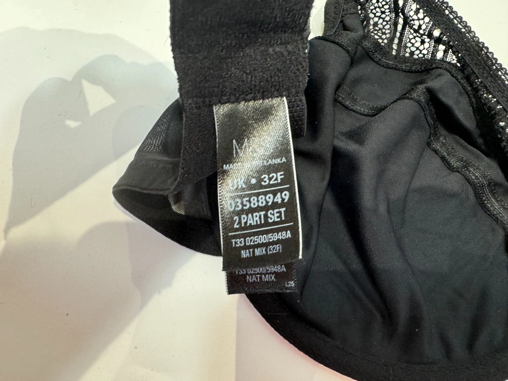 Elevate your lingerie collection with this stunning retro-inspired balconette bra from Marks and Spencer. This black satin bra features lace trim accents, a hook and eye closure, and full coverage for a comfortable and secure fit. The underwired bra is designed with a non-padded cup and a semi-opaque fabric that adds a touch of elegance to your silhouette. Ideal for a special occasion or a night out, this bra is perfect for women who want to feel confident and stylish. The bra is available in size 32F and is suitable for everyday wear. Add this M&S bra to your wardrobe and enjoy the comfort and sophistication it offers.