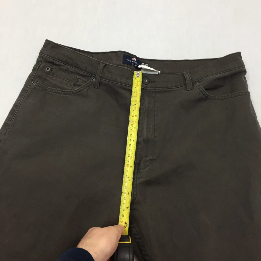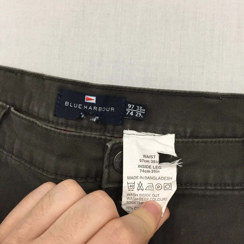 Size Type: Regular Type: Trousers Garment Care: Machine Washable Brand: Marks & Spencer Department: Men Fabric Type: Canvas Pattern: No Pattern Occasion: Business, Casual, Travel Waist Size: 38 in Rise: Mid (10-12 in) Leg Style: Straight Size: 38 Season: Autumn, Spring, Summer, Winter Colour: Brown Handmade: No Material: Cotton Blend Country/Region of Manufacture: Unknown Closure: Button Accents: Button Personalise: No Pocket Type: Coin Pocket Style: Chino Fit: Regular Seller Notes: “Good used condition, check below for full description & photos.” Vintage: No Inside Leg: 29 in
