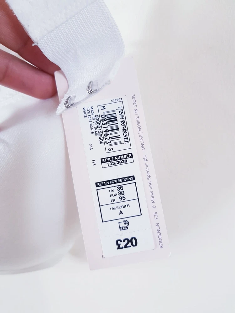 This M&S full cup bra in white is a size 36A and features underwired, lace-covered moulded cups for a push-up effect. The bra has adjustable straps, a hook and eye closure, and is made of stretch fabric for comfort. It is machine washable and has been manufactured in the United Kingdom. In Good Used Condition Measurements In inch : Please see photos above for all measurements I will ship this item out via Evri 2-3 Day Mail with a tracking number for confirmation I ship items out EVERY DAY so EXPECT a QUICK delivery! Please feel free to ask any questions you may have I answer most questions instantly! PLEASE NOTE THAT ALL OUR ITEMS ARE %100 AUTHENTIC Please Note that all our items are from smoke and pet free Environment. #06/12/24# (B269) PLEASE VISIT MY STORE AND CHECK MY OTHER ITEMS THANK YOU