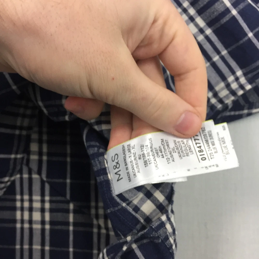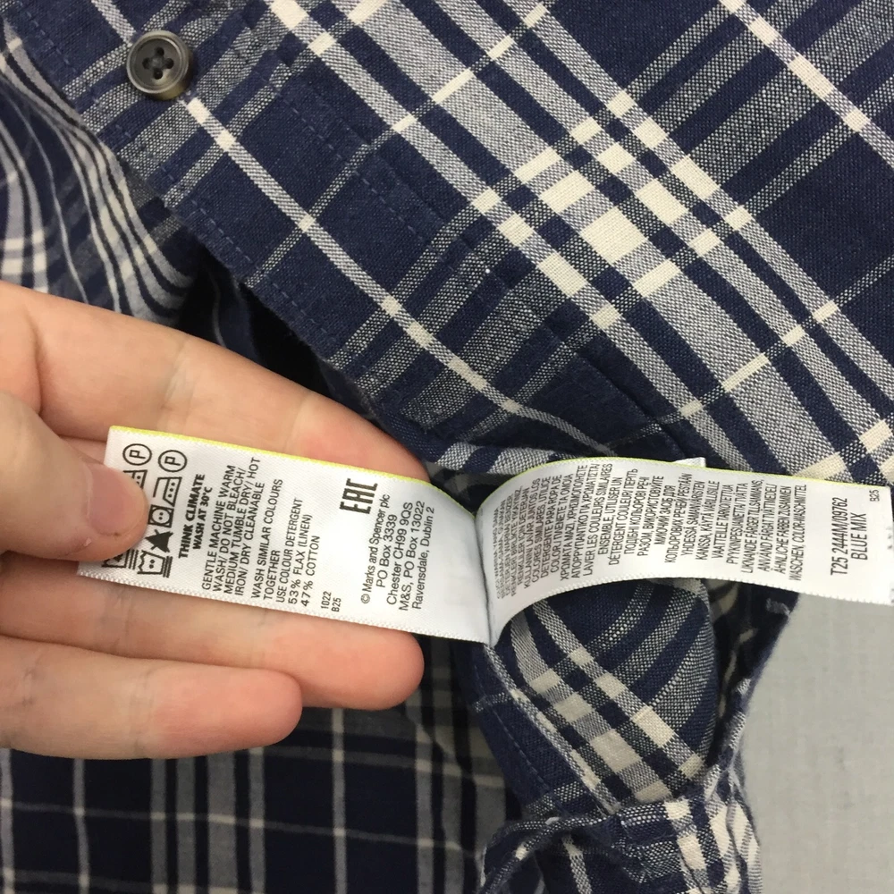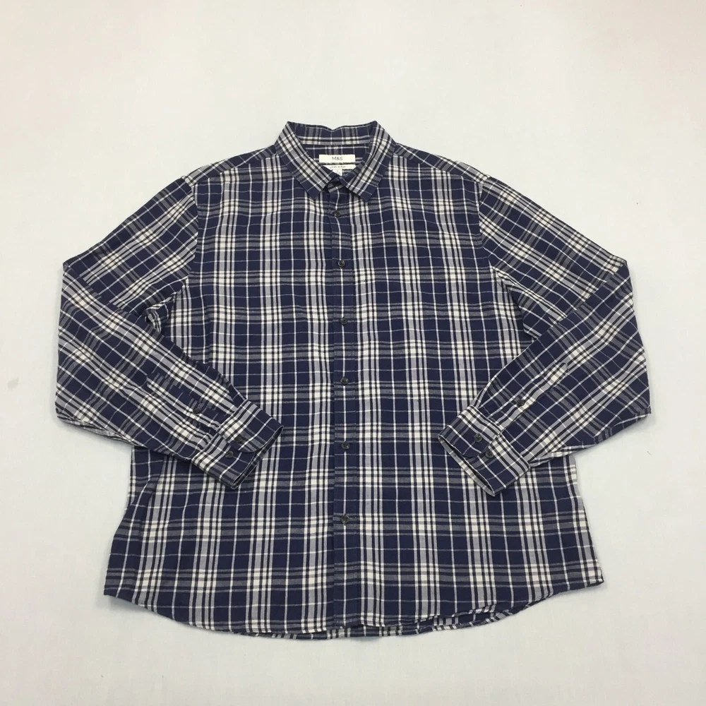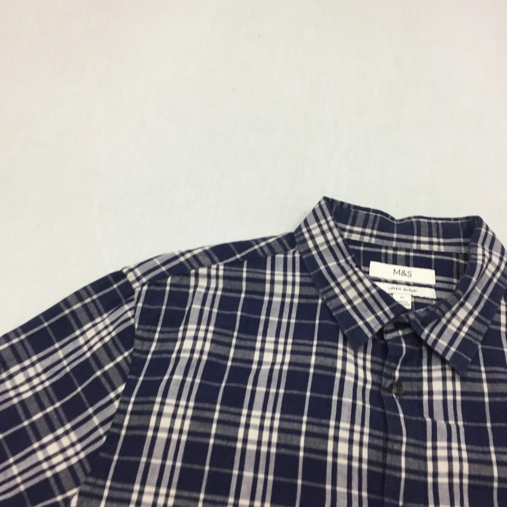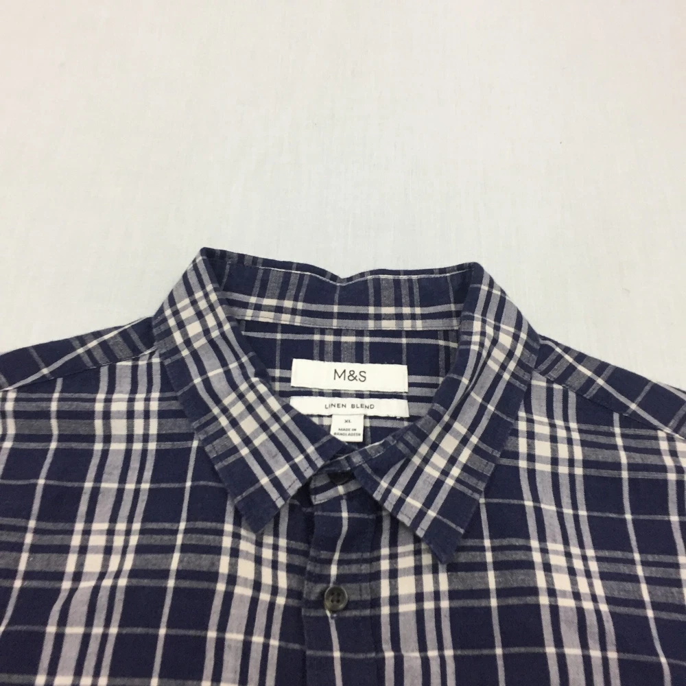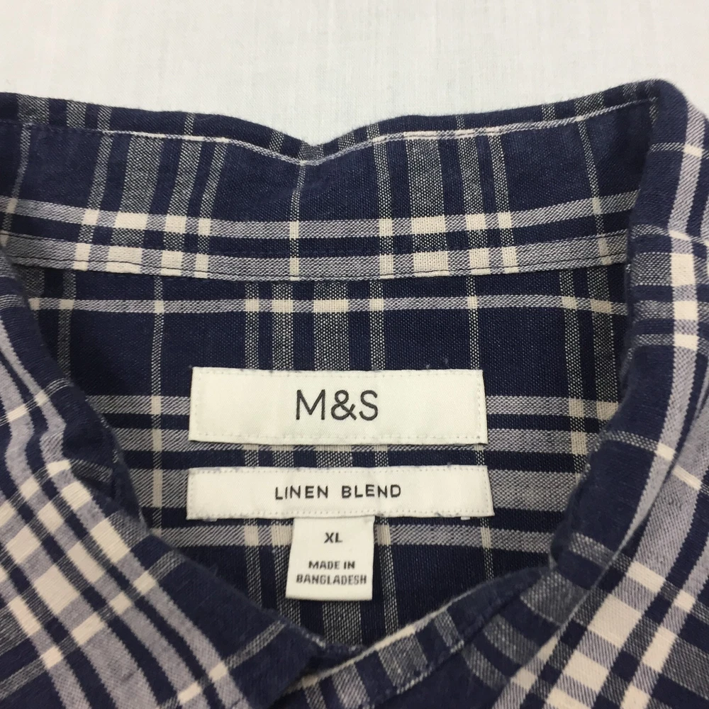 Vintage: No Fabric Type: Canvas Season: Autumn, Spring, Summer, Winter Features: All Seasons Accents: Button Closure: Button Size Type: Regular Neckline: Collared Handmade: No Personalise: No Brand: Marks and Spencer Garment Care: Machine Washable Department: Men Size: XL Collar Style: Button-Down Country/Region of Manufacture: Unknown Seller Notes: “Good used condition, check below for full description & photos.” Material: Linen Theme: Classic Type: Button-Up Colour: Blue Fit: Regular Pattern: Check Occasion: Business, Casual, Formal