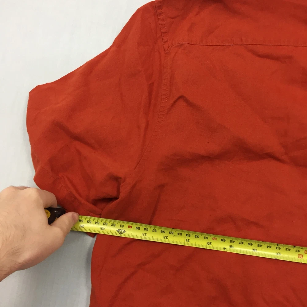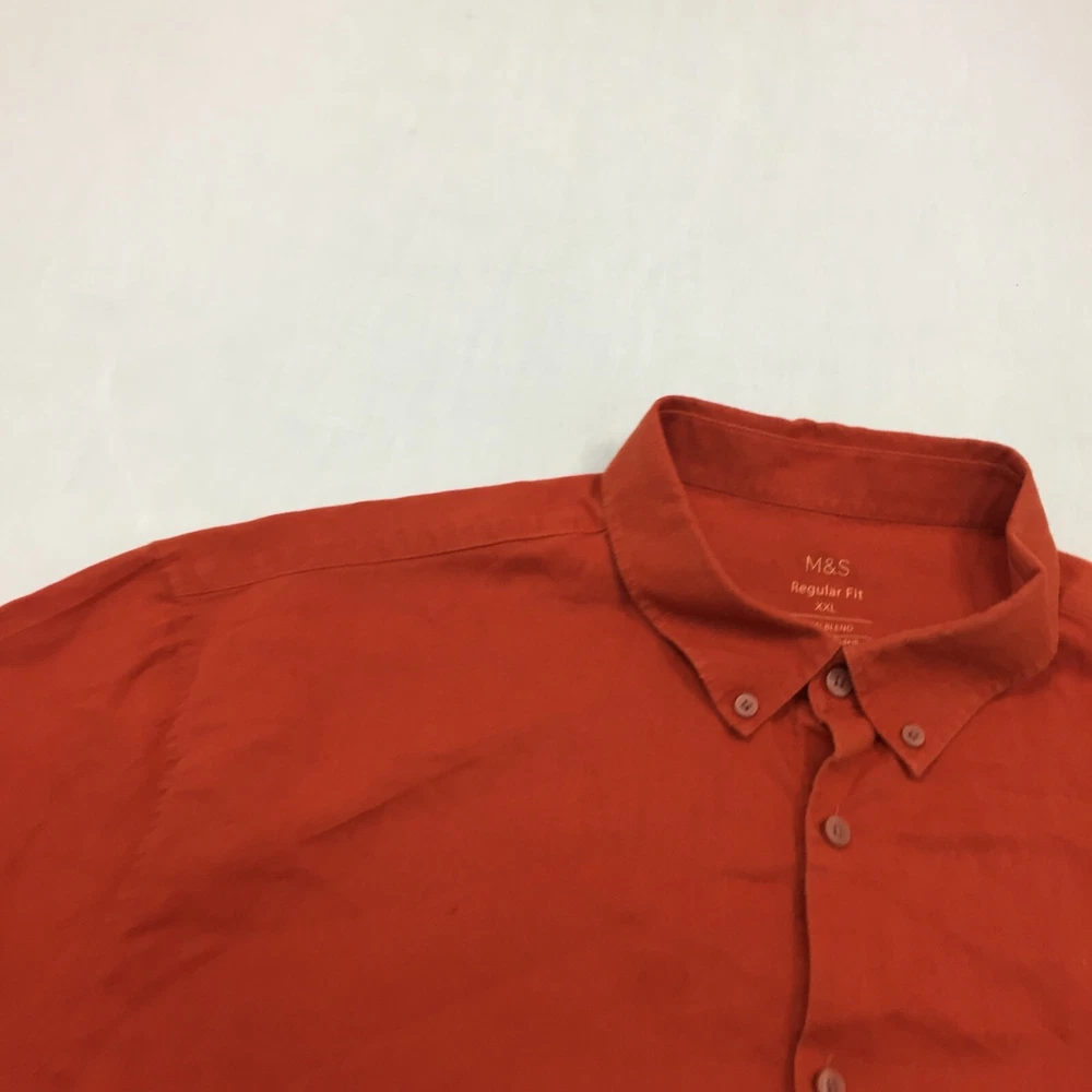 Season: Autumn, Spring, Summer, Winter Size: 2XL Garment Care: Machine Washable Accents: Button Seller Notes: “Good used condition, check below for full description & photos.” Features: All Seasons Sleeve Length: Short Sleeve Type: Button-Up Fabric Type: Canvas Collar Style: Button-Down Country/Region of Manufacture: Unknown Vintage: No Department: Men Material: Linen Handmade: No Fit: Regular Closure: Button Theme: Classic Personalise: No Occasion: Business, Casual, Formal Colour: Orange Neckline: Collared Size Type: Regular Brand: Marks and Spencer