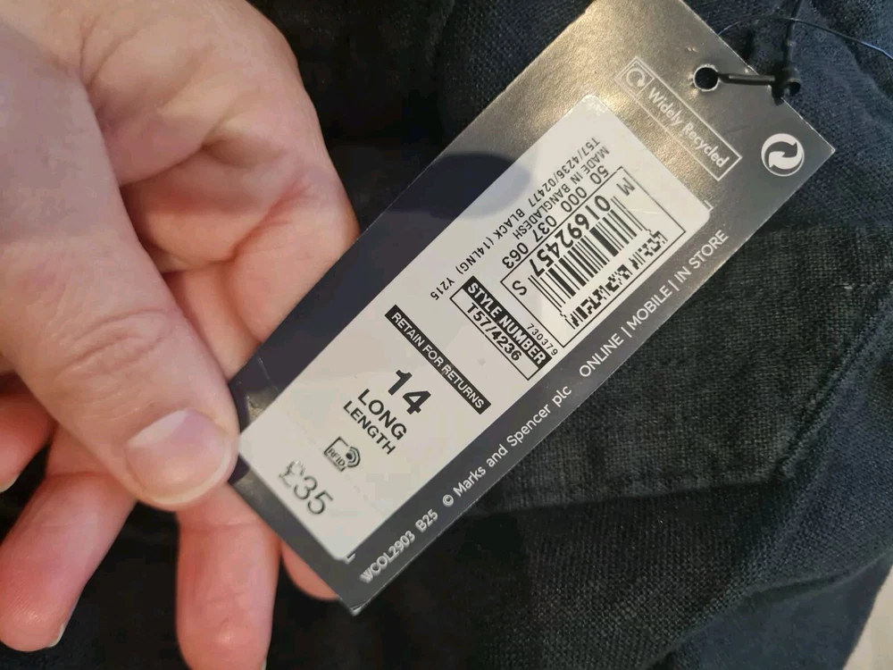 M&S Pure Linen Size 14 UK Wide Leg Trouser Cropped BNWOT