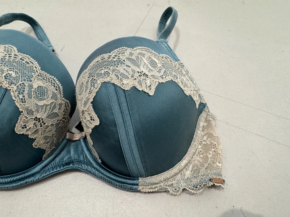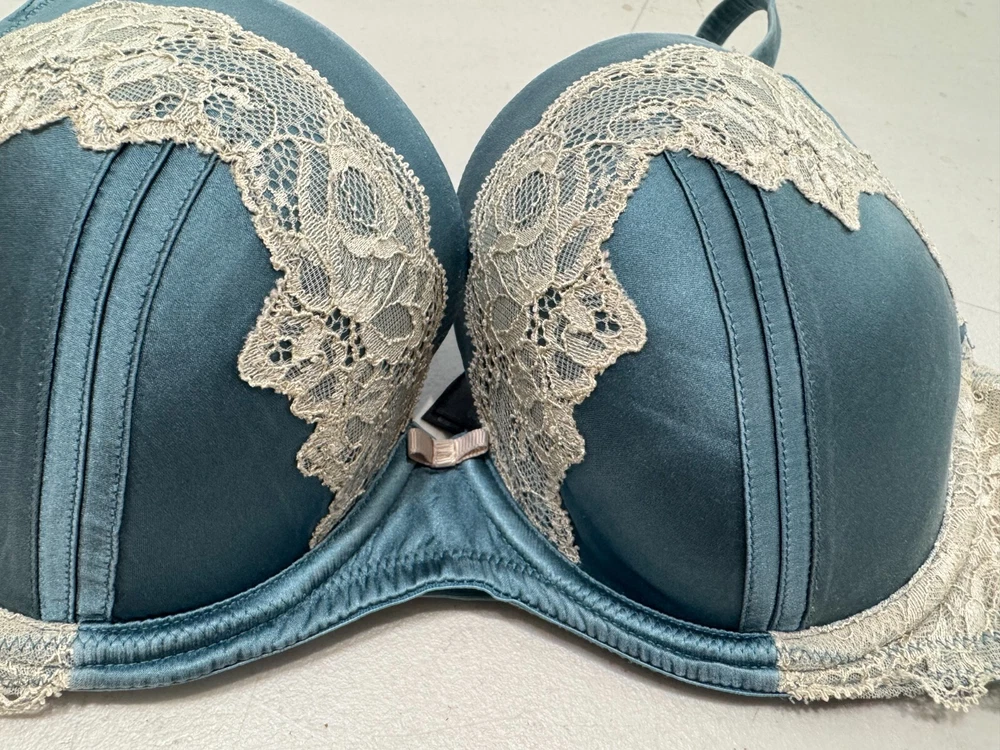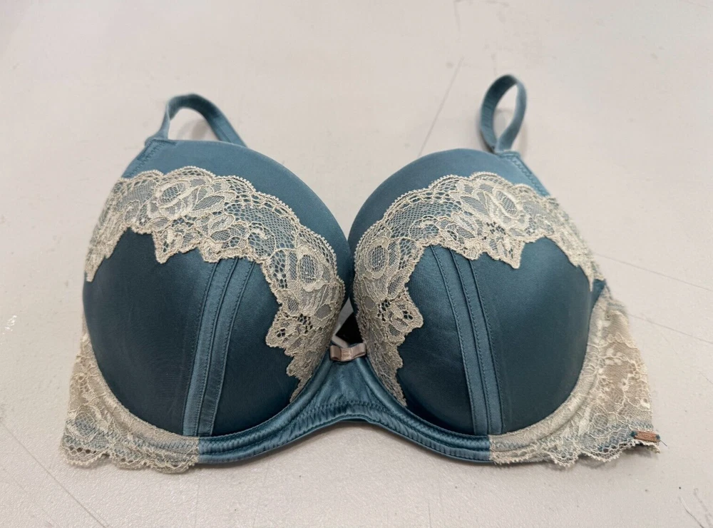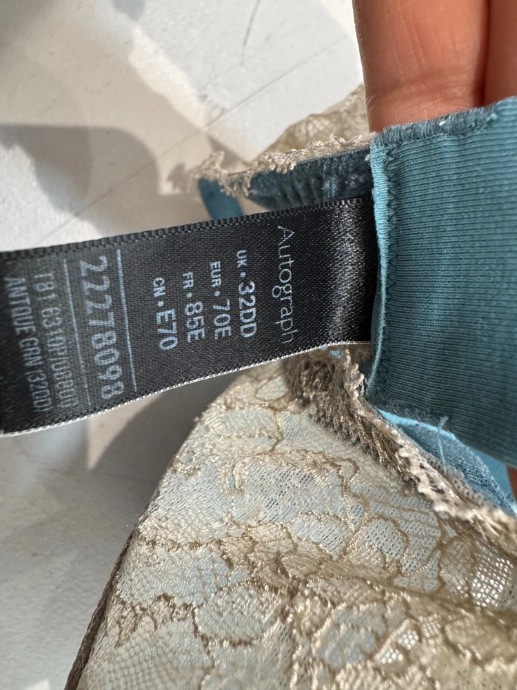 Indulge in luxury with this stunning M&S Rosie Bra. The retro-inspired balconette style, underwired and padded, offers full coverage and support, while the satin silk blend material with lace accents adds a touch of elegance. The hook and eye closure ensures a secure fit, and the blue colour and floral pattern give it a unique and feminine touch. This bra is perfect for any occasion and will make you feel confident and beautiful all day long. Available in size 32DD, it is a must-have addition to any lingerie collection.