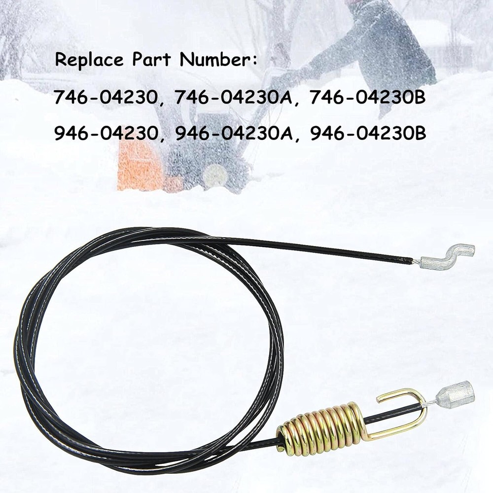 946-04230B 746-04230 Clutch Drive Cable for MTD Craftsman Cub Cadet Troy-Bilt Yard Machines Snowblower 946-04230 946-04230A 746-04230A 746-04230B, Cable Length 47.5" Snowthrower Auger Clutch Drive Control Cable Replaces OEM Number: MTD 746-04230, 746-04230A, 746-04230B, 946-04230, 946-04230A, 946-04230B Auger Clutch Cable Fits For MTD, Craftsman, Cub Cadet, Troy-Bilt, Columbia, White Outdoor, Yard Machines Snowblowers Suitable For Columbia 2008-2011 snowblowers, Cub Cadet 2X and 3X snowblowers, MTD 2012 and 2013 snowblowers, MTD Gold 2012 and 2013 snowblowers, MTD Pro 2012 snowblowers, Troy-Bilt Storm 3090, 2840, 2410 and 2620 snowblowers, White Outdoor 2005 snowblowers, Yard Machines 2012 snowblowers SPECS:Cable Ends Z bend one end, spring on other; Total Length: 47.50"