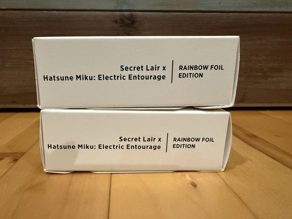 Up for bids is a Magic Secret Lair Hatsune Miku: Electric Entourage rainbow foil card set in both English and Japanese. Boxes may have some light wear that would not affect contents. Please e-mail with any questions! Ships FREE USPS Ground Advantage in a box, please add $4 for Priority shipping!!