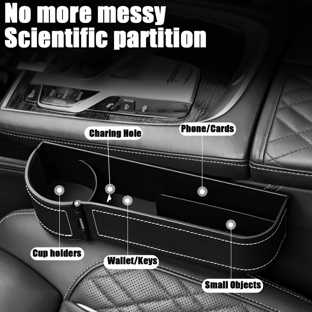 MTGOCHA Car Seat Gap Filler Organizer Adjustable Car Leather Cup Holder Gap Bag, Car Seat Gap Storage Box, Car Organizer Between Seats for Phone,Glasses,Keys,Cards(2Pack,Black) - Buy Now with Fast Shipping! MTGOCHA Car Seat Gap Filler Organizer Adjustable Car Leather Cup Holder Gap Bag, Car Seat Gap Storage Box, Car Organizer Between Seats for Phone,Glasses,Keys,Cards(2Pack,Black) Product Details Manufacturer: MTGOCHA Brand: MTGOCHA Model: SeatGap-Filler-AD Item Weight: 9.6 ounces Product Dimensions: 10.04 x 2.95 x 6.5 inches Country of Origin: China Item model number: SeatGap-Filler-AD Manufacturer Part Number: SeatGap-Filler-AD Date First Available: December 25, 2024 Key Features ✅ Adjustable Cup HolderThe cup holder of the car seat pocket adopts an adjustable design,suitable for cups with a diameter of 2.3-3.9 inch(6-10cm).The frame of the car storage organizer front seat is made of ABS plastic and wrapped in PU leather, stable, sturdy, stylish, and will not wear down the leather of your seatwith a velvet material pads that can prevent items from sliding and rattling. ✅ Stop Dropping & Driving SafetyThe car seat side gap filler can effectively prevent small items from falling into the gaps of the seat,without the trouble of searching for things under the seat, ensuring driving safety. ✅ Say Goodbye to MessKeep your car organized and clutter-free with the auto seat gap filler, Never worry about lost or misplaced items again! Keep your phone, keys, coins, cards, wallets, driver's license and other small items organized and readily available. ✅ Size & NotesThis car seat storage box Not suitable for car seat gaps wider than 0.8 inches(2cm) and central console lower than the seat.The size of the car inserts between seats is 10.03 x 6.49 x 2.95 inches which is suitable for most vehicles. Please measure the distance between your seat and the console carefully before you purchase. ✅ Move with The SeatThis car pockets between seats gap can follow the power seat to move back and forth. And it will not fall deep into the gap due to seat movement. Not affect the normal use of the seat and seat belt either. ✅ Buy with Confidence & Must-Have Car AccessoriesEach package comes with 2 in between car seat catcher(driver side),We offer a 1-year warranty,Please feel free to buy, If you are not satisfied with the purchase, Please email us directly, thank you very much! Product Description