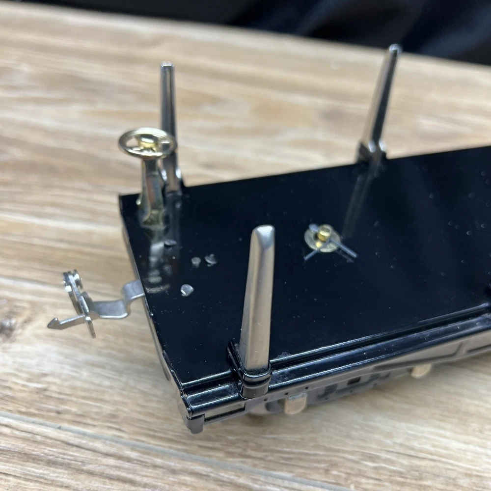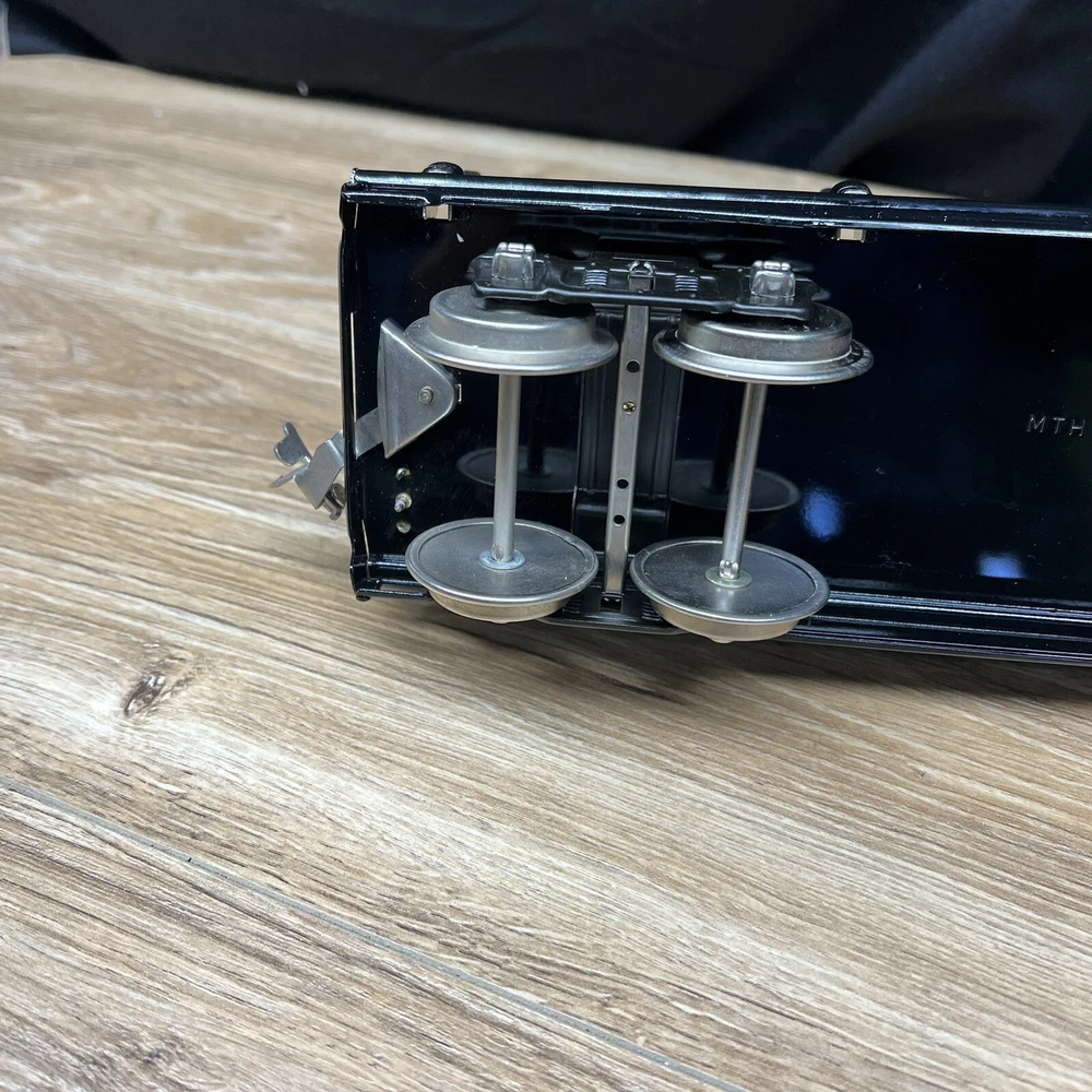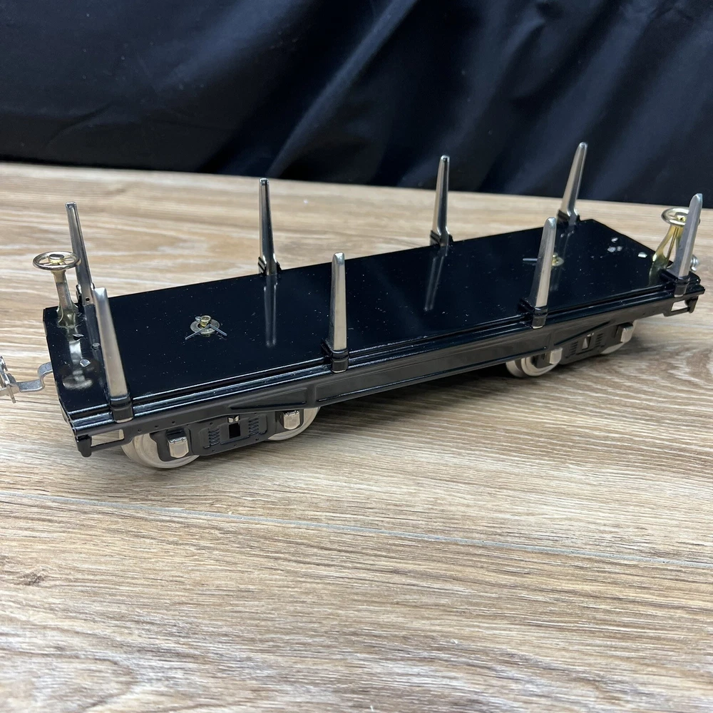 This MTH Standard Tinplate 200 Series 211 Black Flat Car is perfect for any model railroad enthusiast. It features a latch style coupler and is ready to go. The car is painted in a sleek black color and is made of high-quality tinplate material. This item is ideal for collectors and hobbyists alike who are looking to add to their existing collection.