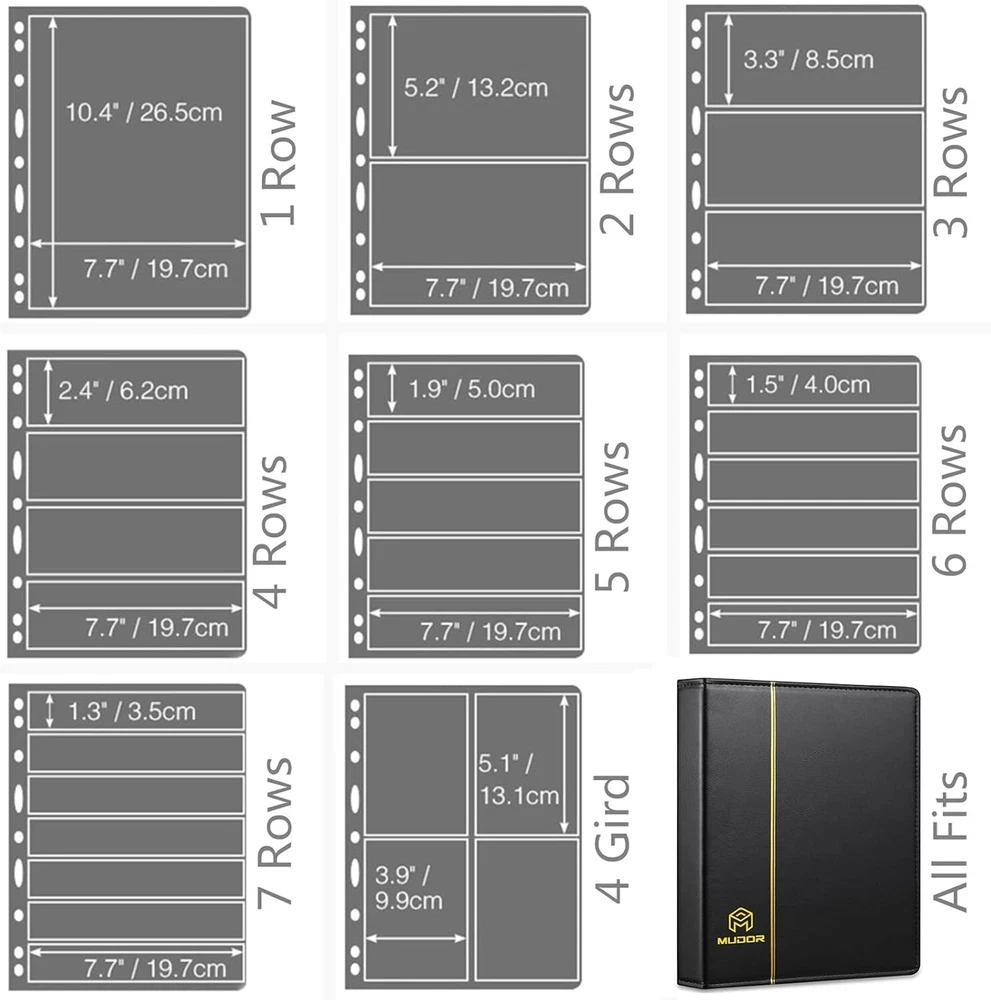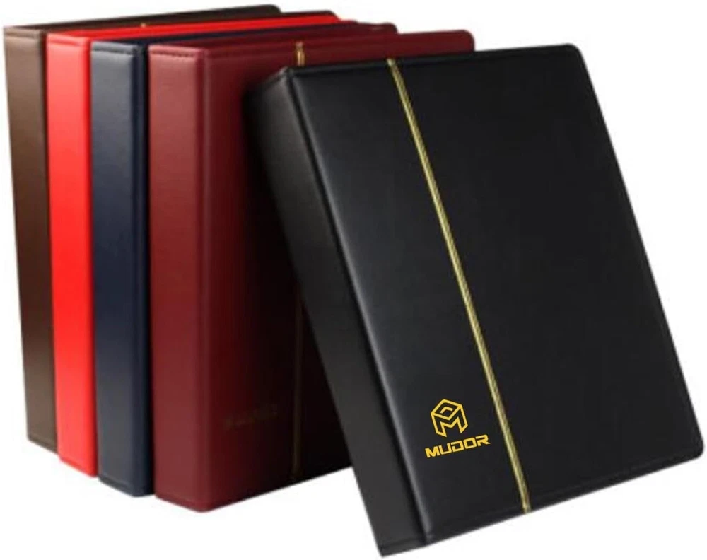 MUDOR Empty Premium PU Classic Binder, 4 Ring Binder Albums Stockbook for Stamps, Documents, Coins, Bank Notes (Red) Color Red Material Polyurethane (PU) Capacity 2 Inches Brand MUDOR Sheet Size Letter About this item · Premium 4-ring binder, D-shaped design buckle.Note: This product is only an empty book and does not contain inner pages. · Binder Size:12 3/5"x9 4/5" x 2 " (320 x 250 x 5 mm) · Dramatic attention to detail,Hand stitching. · Note: This product is only an empty book and does not contain inner pages.Suitable for stamps, coins and postcard inner pages, it can holds up to 35 stock sheets (8 1/2" x 11") . · Compatible any 8 1/2" x 11" size 4-ring or 9 hole sheet, The best choice is MUDOR pages.