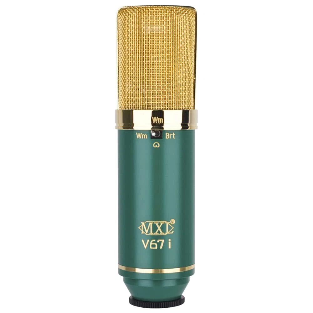 A large, dual diaphragm version of our legendary V67G, the V67i has a unique, patented design with two selectable diaphragms. It's like having two mics in one - with the front side having a warm, opulent sound, and the back side simulating some of the brighter, more airy sounding characteristics of early tube mics. If you're looking for several quality microphones but are on a limited budget, look no further. The V67i will give you killer results. Two switch selectable diaphragms. One Warm / One Bright Solid state preamp with balanced transformer output -10 dB pad and roll-off filter Comes with mic clip and wooden case Distinctive green and gold design