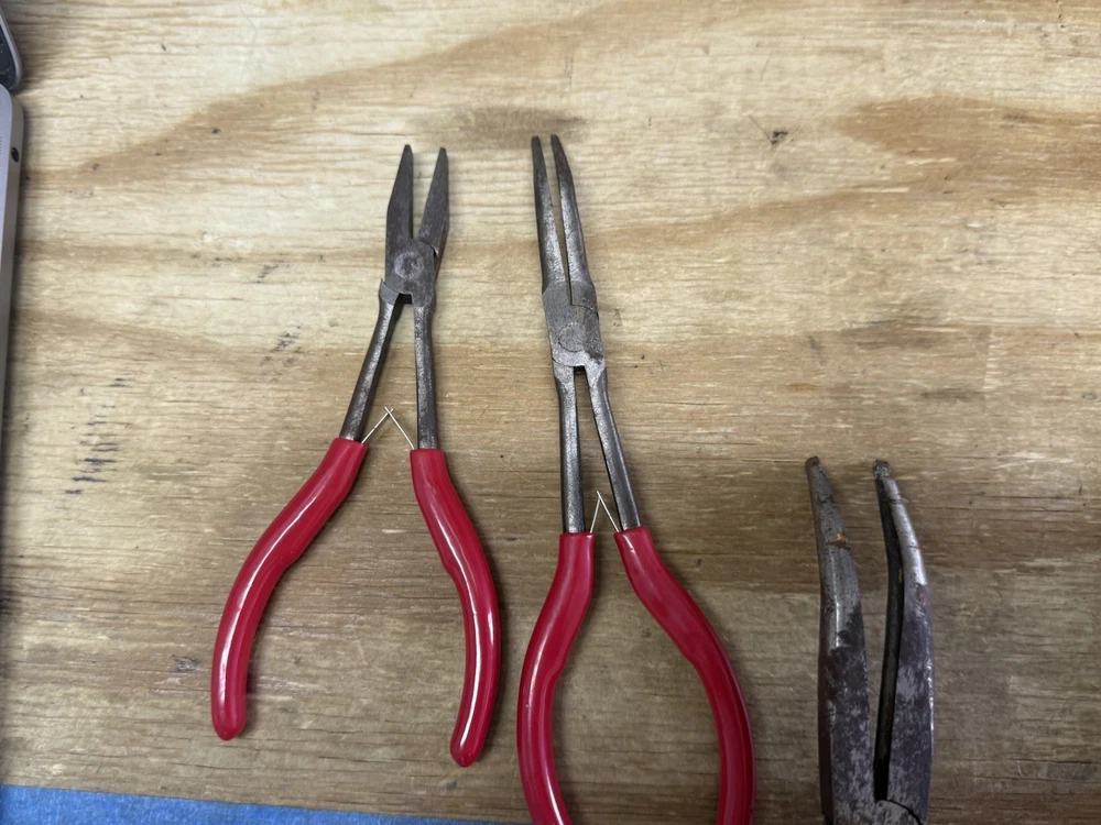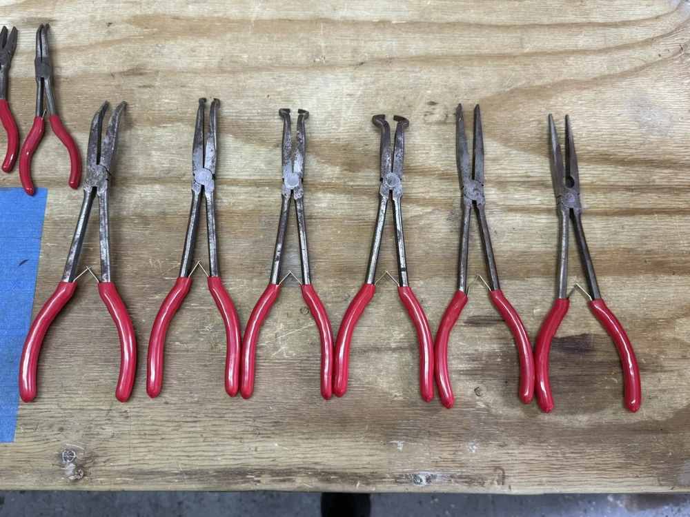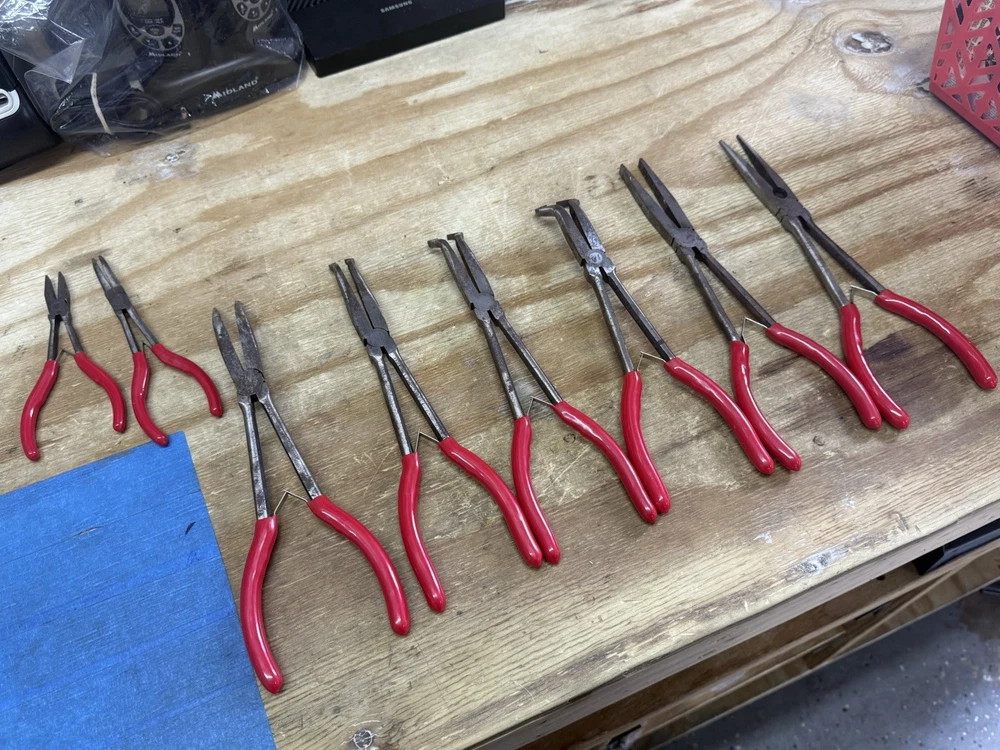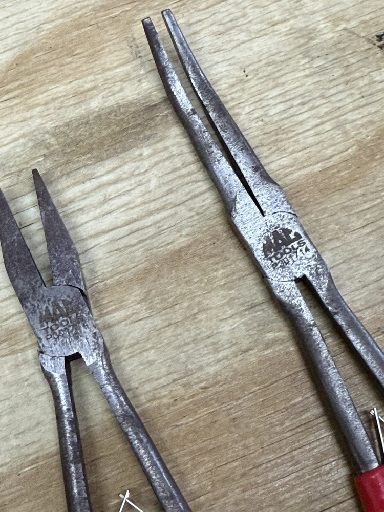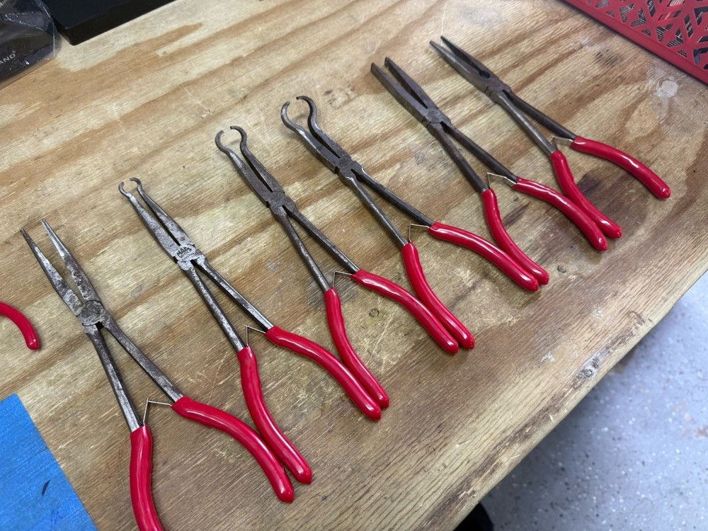 🔧🛠️ Mac Tools Plier Lot – 8 Pliers – Spring Loaded – Pre-Owned – READ! This lot includes 8 Mac Tools pliers , featuring models P301788, P301787, P301786, P301714, and others. All large pliers are spring-loaded and functional , with handles in good shape. Two smaller pliers are very tight and do not spring properly —they will need some attention. Some surface rust is present. Sold as-is with fast shipping . Details: ✅ Brand: Mac Tools ✅ Quantity: 8 pliers ✅ Includes: • P301788, P301787, P301786, P301714, and 4 additional models (see photos) ✅ Features: Spring-loaded pliers (various sizes) ❌ No storage case or extras 🎯 Condition: Pre‑owned – functional with wear ✅ All large pliers spring and operate properly ⚠️ 2 smaller pliers are stiff and need attention ⚠️ Surface rust present – see photos ✅ Handles in good overall condition ✅ Sold as-is in current condition 🎁 A great lot for mechanics, collectors, or anyone looking for quality Mac Tools pliers at a value. 🚀 FAST & SECURE SHIPPING! — Professionally packed and shipped quickly. Message for additional photos if needed!